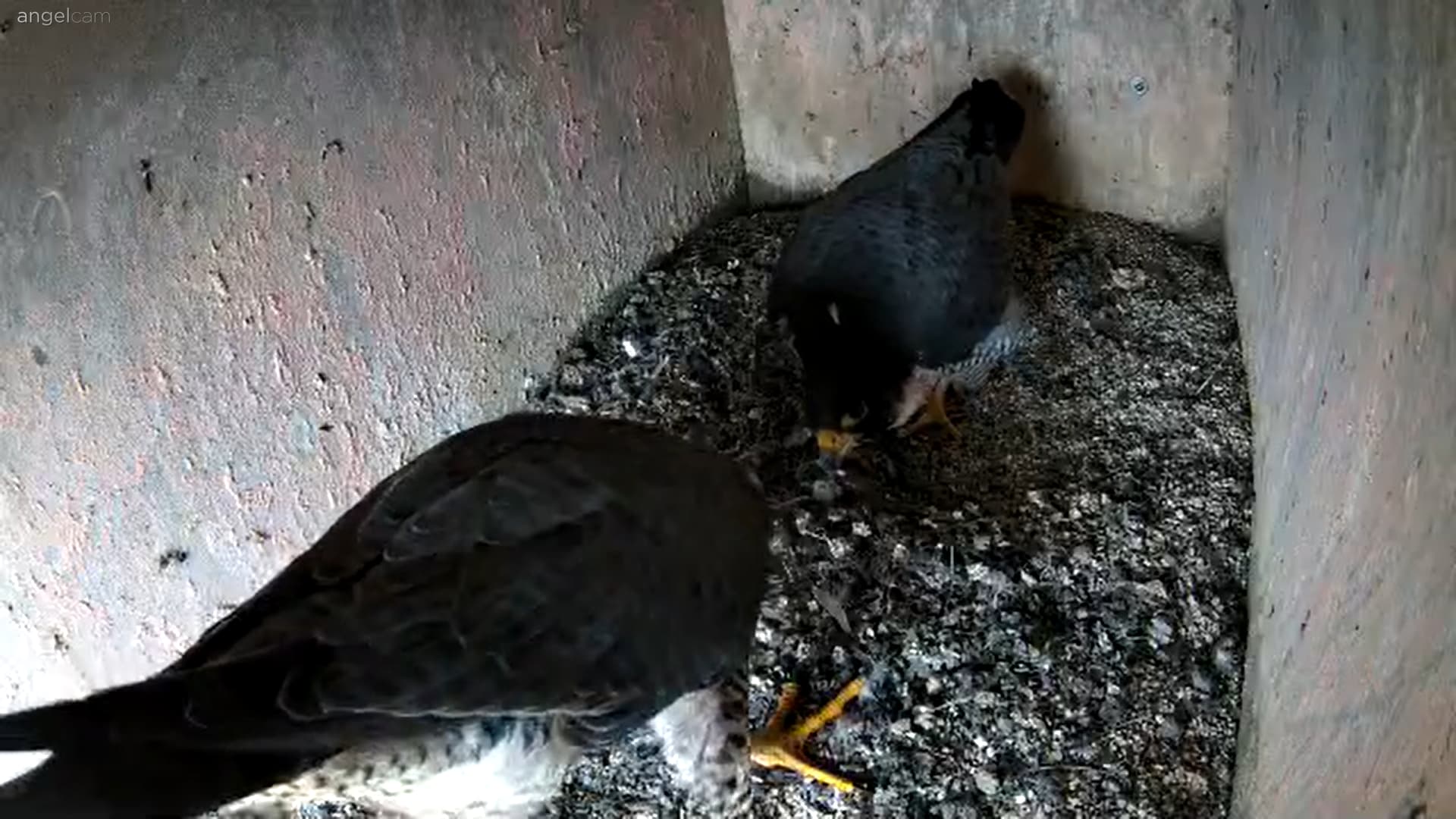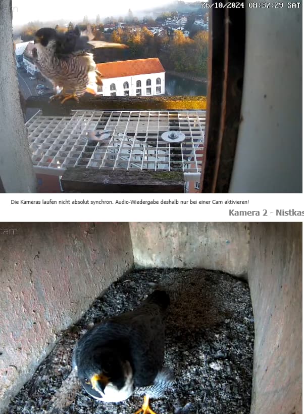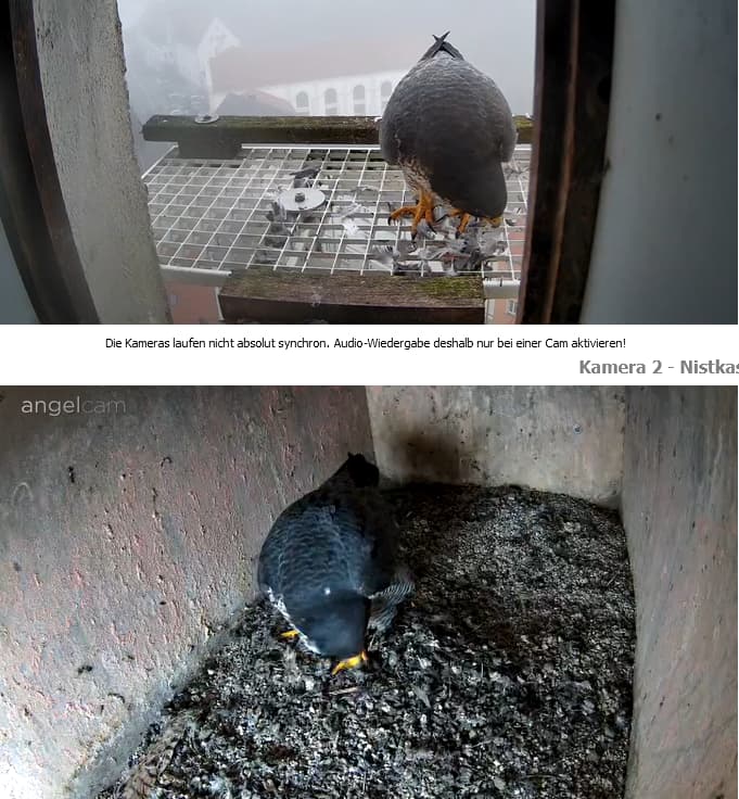 Beim Wanderfalkenpaar geht es heute seit 8.30 Uhr laut zu - bonding.