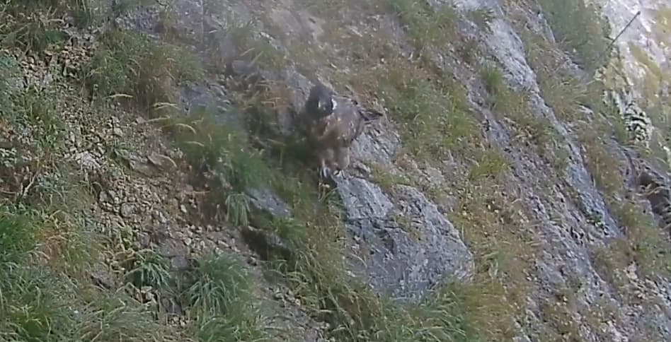 Tja, das ist bei den beiden (wie in der Regel) kein ganz entspanntes Verhältnis. Auch die Jungvögel sind gegenüber Bartgeiern (oder anderen großen „Eindringlingen“) recht aggressiv. Diese Erfahrung mussten wir ja auch schon im ersten Jahr machen, als das (ebenfalls) junge Steinadlerweibchen Wally und Bavaria anfangs ziemlich heftig attackiert hat.