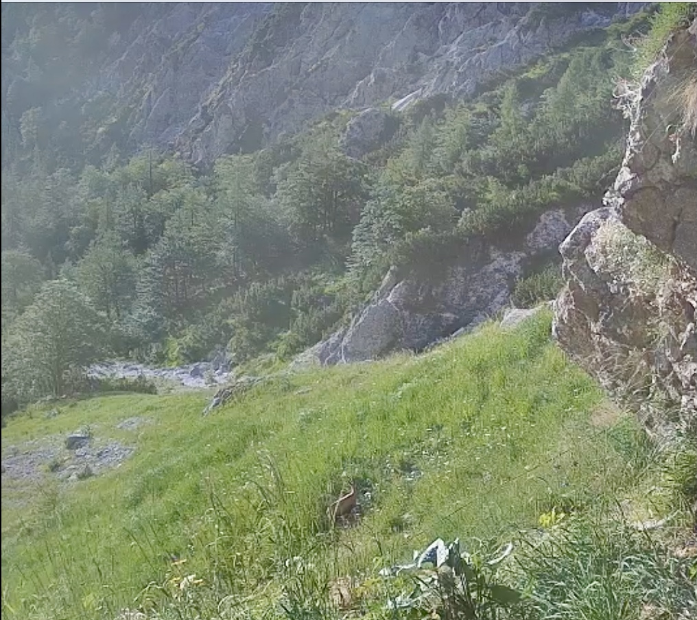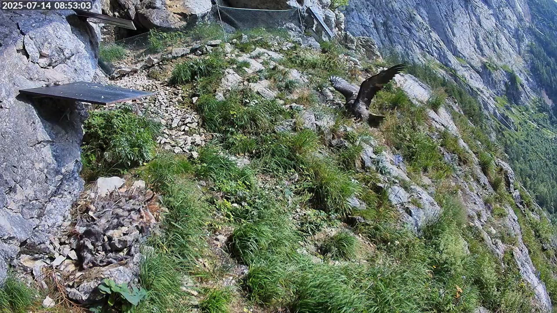 um 8 Uhr war bei einem Flug oberhalb der Nische kurz auf Cam1 im Gras der Schatten des Bartis zu sehen.
