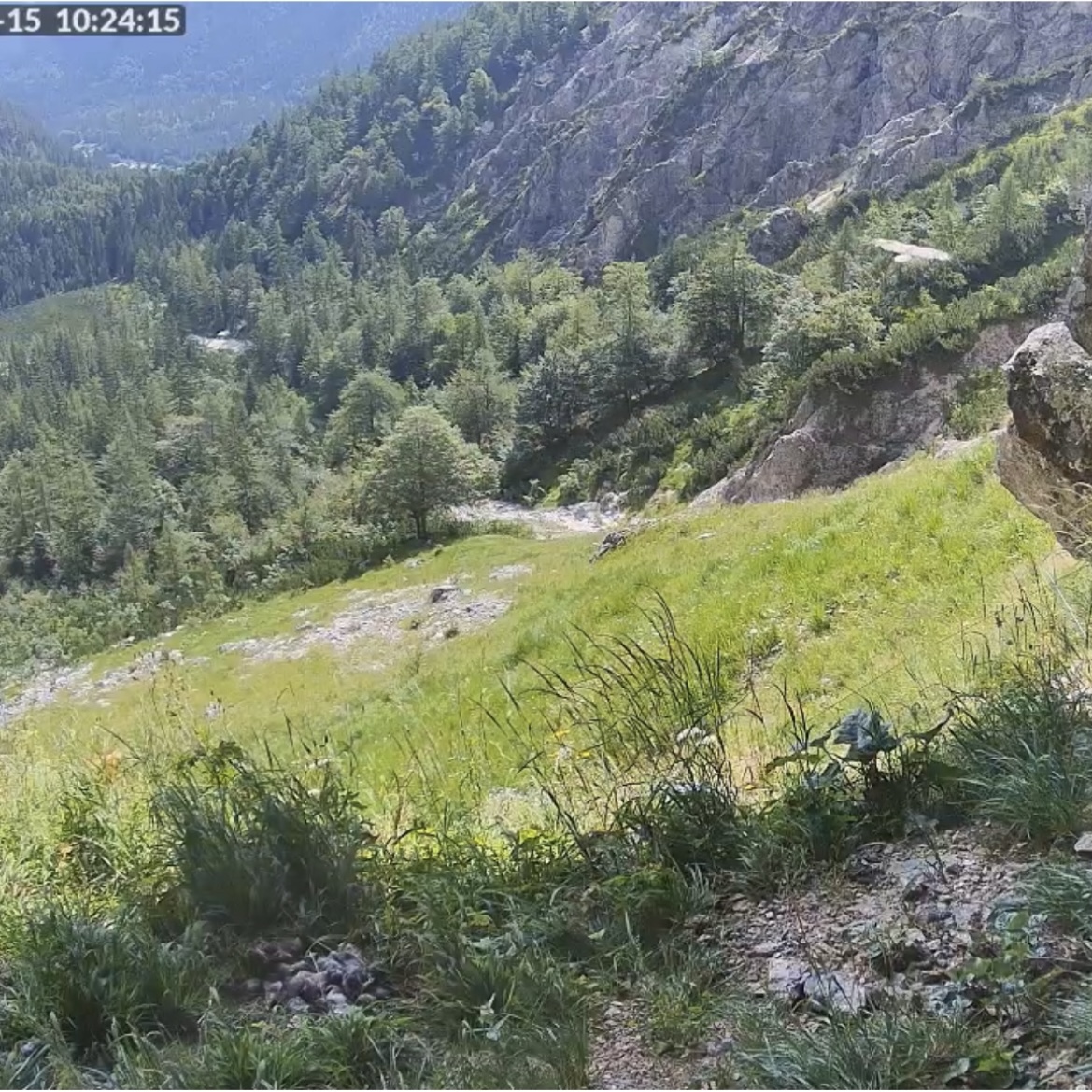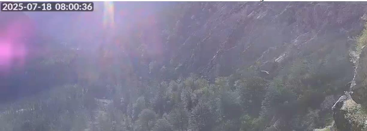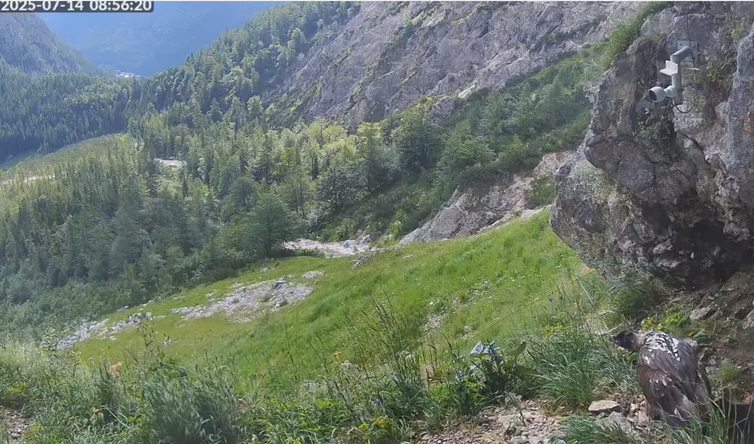 Um 07:09 Uhr ist auf der Cam2 ein Barti kurz durch die Halsgrube geflogen