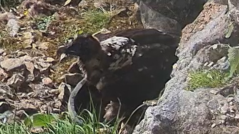 Generl poltert und raschelt unterhalb vom unteren Nest am Felsen.
