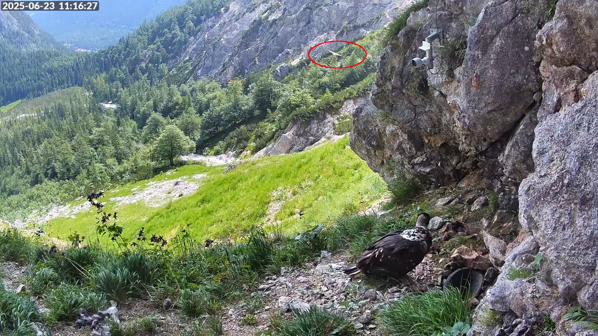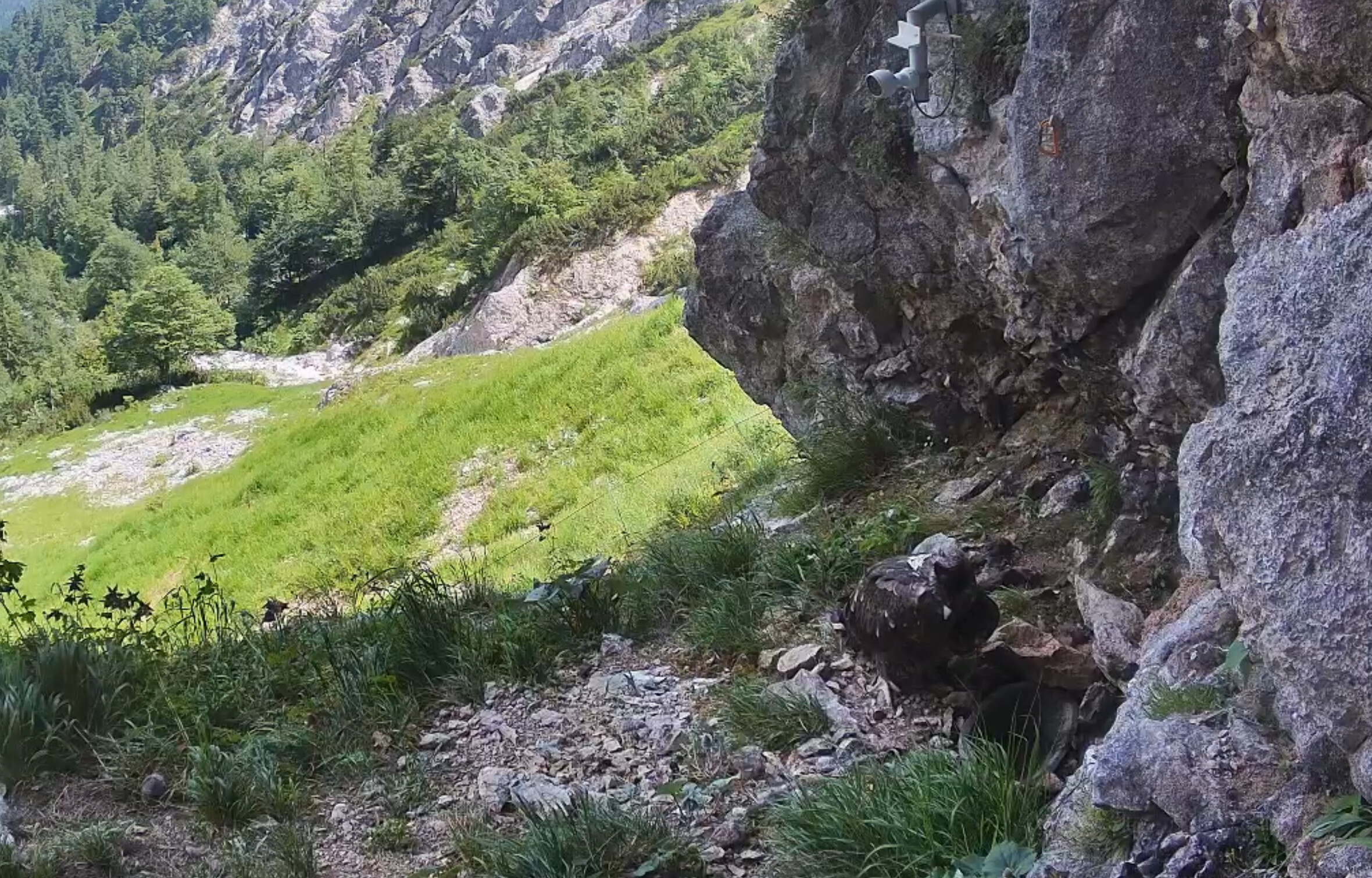 Im Moment sitzt er in der Steinrinne vor dem großen Felsen.Schon wieder abgeflogen .