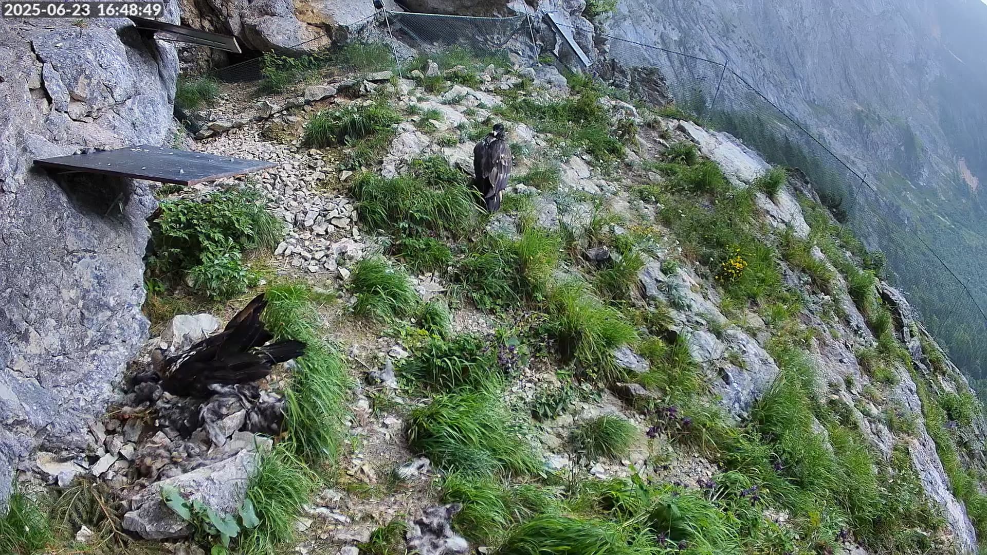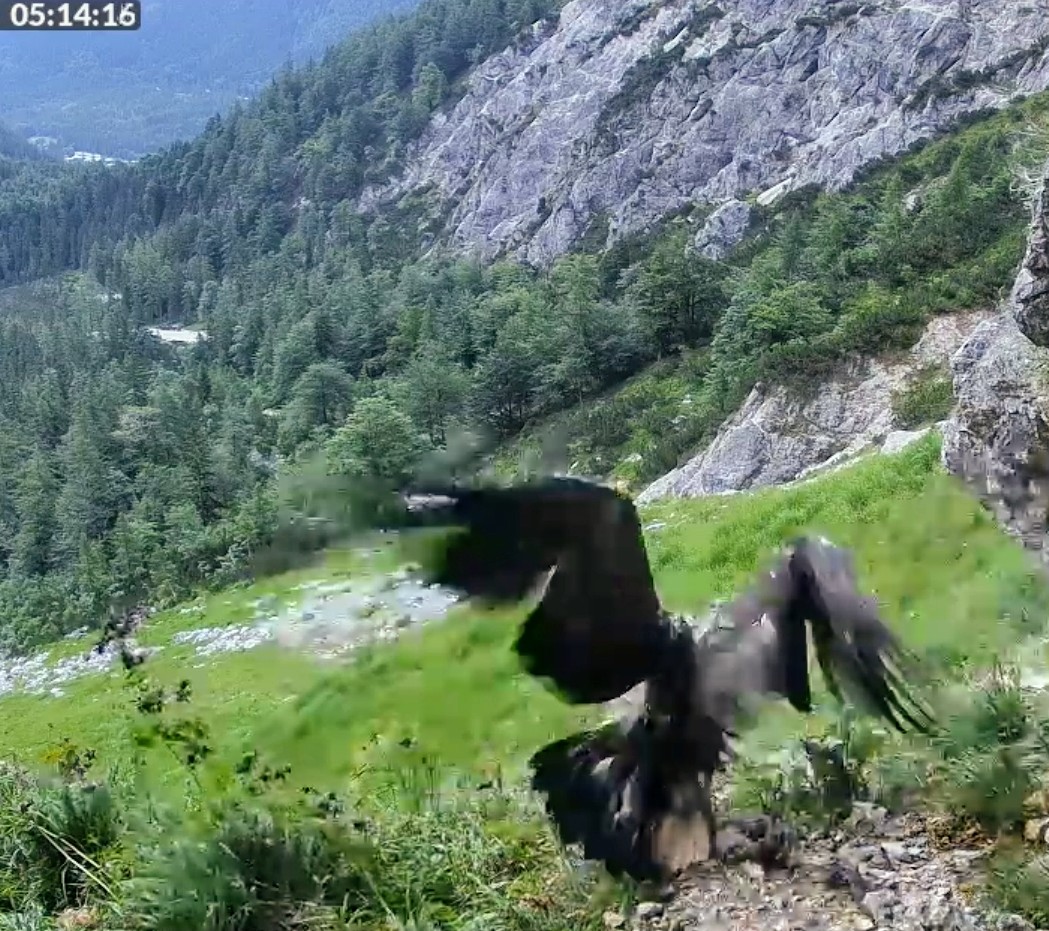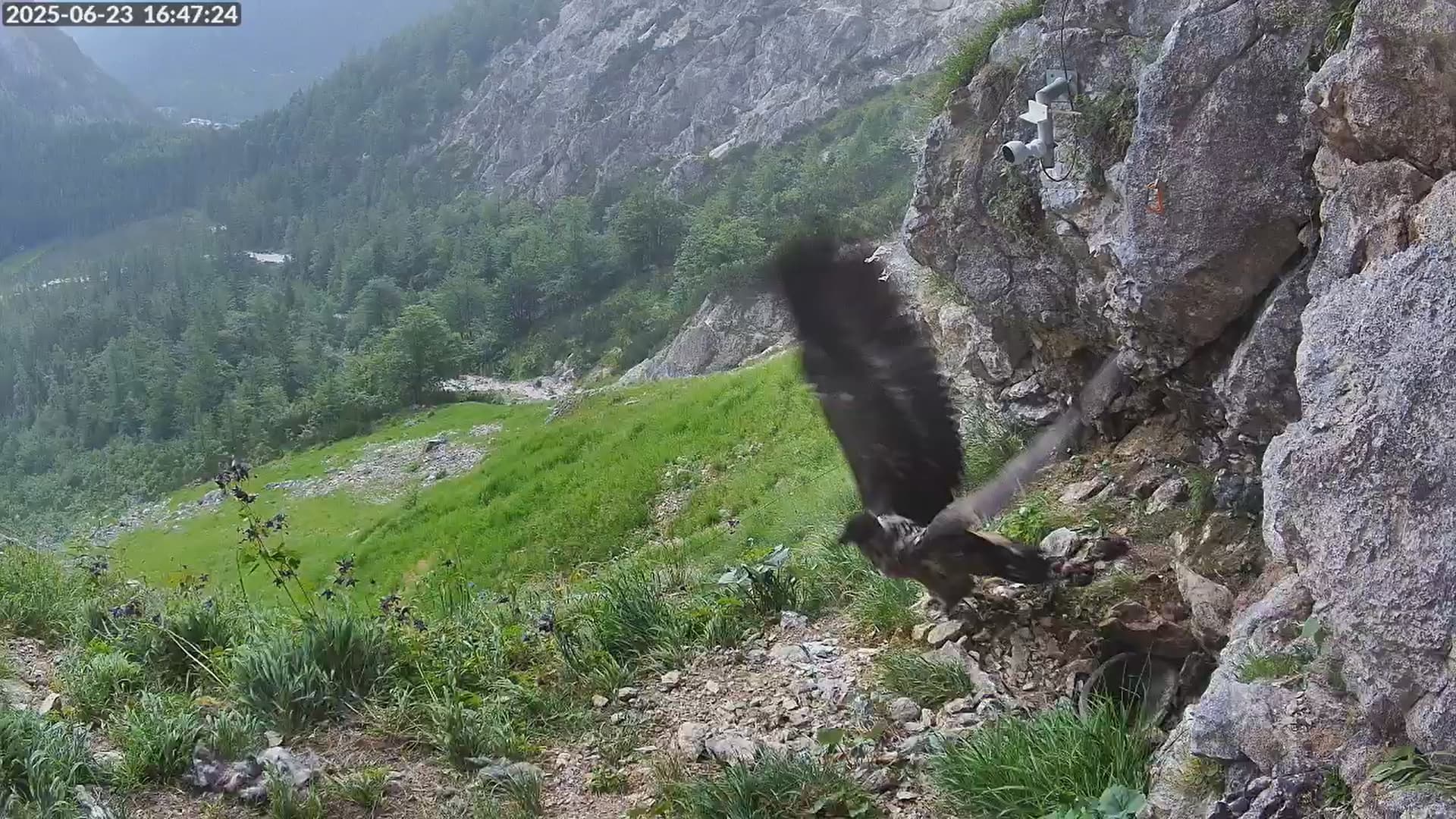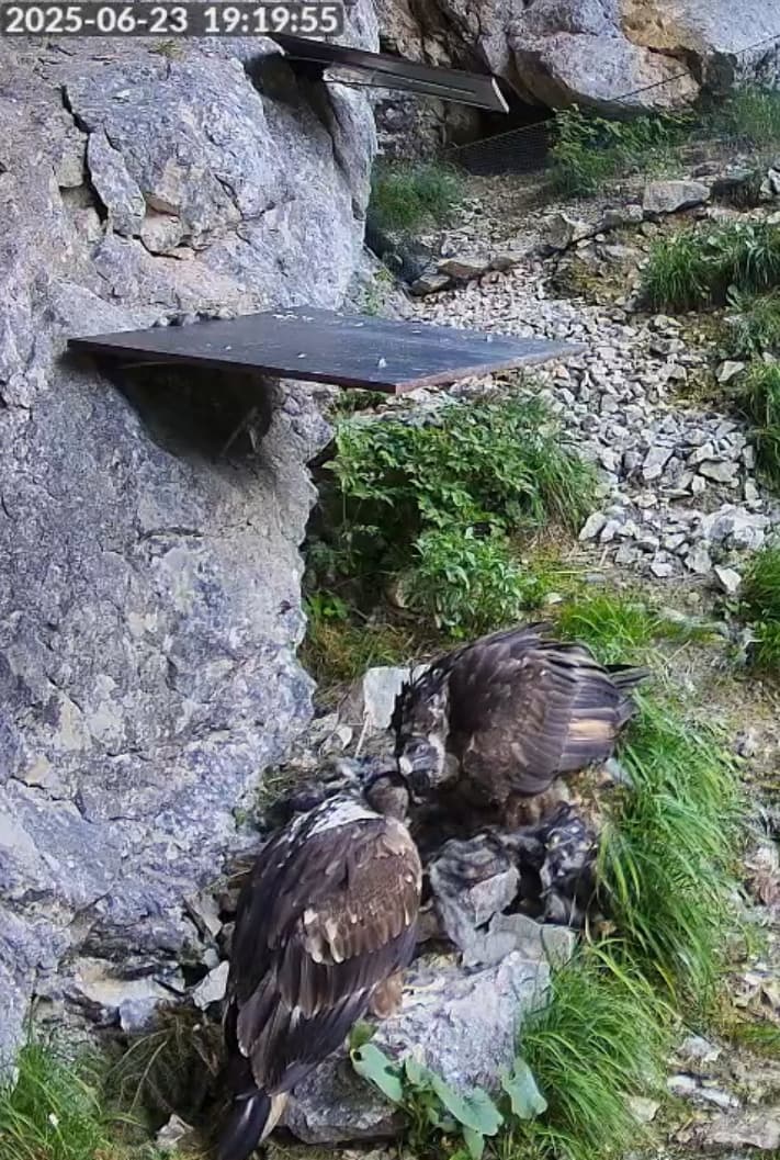 . Sie hat sich mit einem großen Knochen beschäftigt, aber immer wieder steht sie da und schaut in die Ferne. Zwischendurch war sie an der Tränke, aber da ist nichts drin, dann schaut sie wieder, trainiert ihre Flügel. Dann stoppte die Cam mehrmals, als sie wieder lief, war die Luisa weg - aber dann hab ich sie unterhalb der Kante gesehen