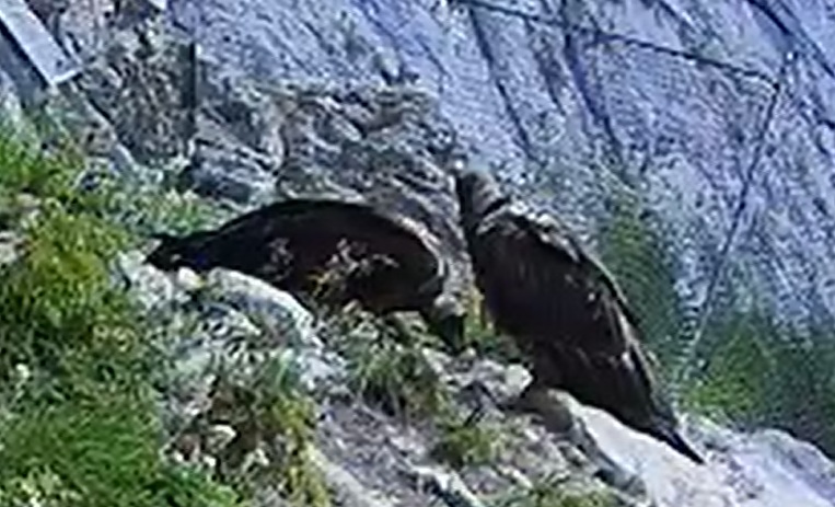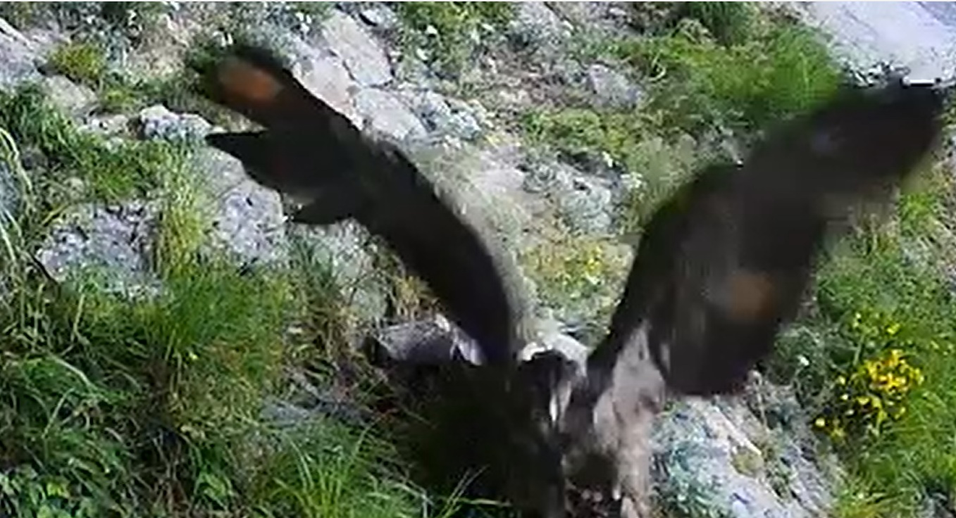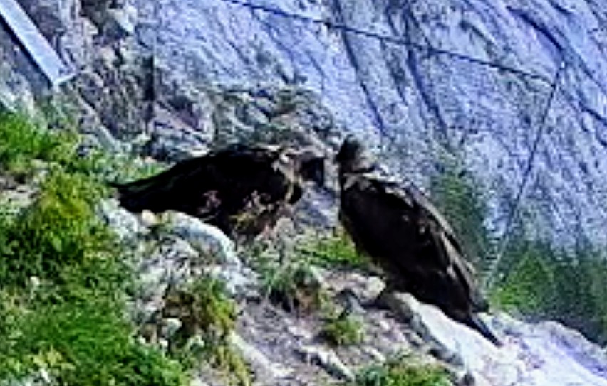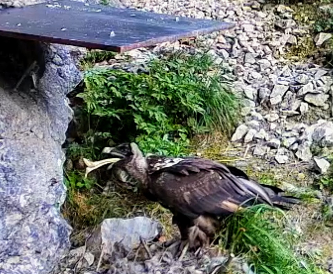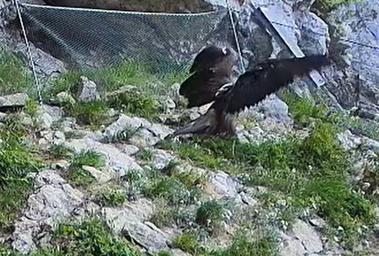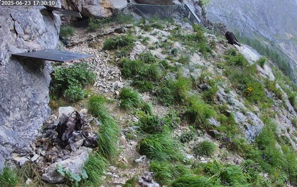 . Sie hat sich mit einem großen Knochen beschäftigt, aber immer wieder steht sie da und schaut in die Ferne. Zwischendurch war sie an der Tränke, aber da ist nichts drin, dann schaut sie wieder, trainiert ihre Flügel. Dann stoppte die Cam mehrmals, als sie wieder lief, war die Luisa weg - aber dann hab ich sie unterhalb der Kante gesehen