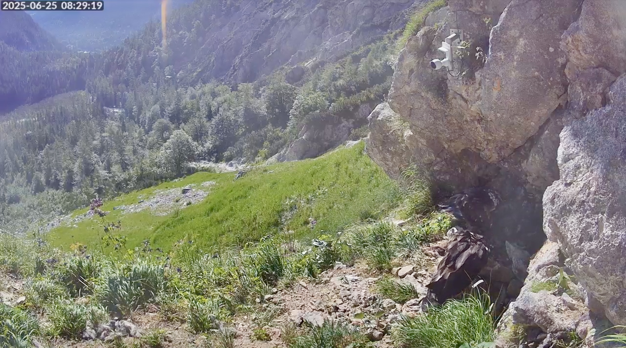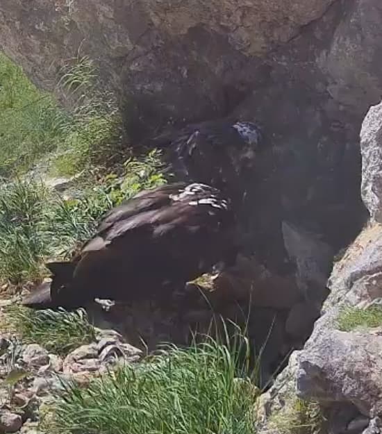 Das Steinadlerpaar ist sehr territoreareal und hat aktuell ein Küken im Nest.
