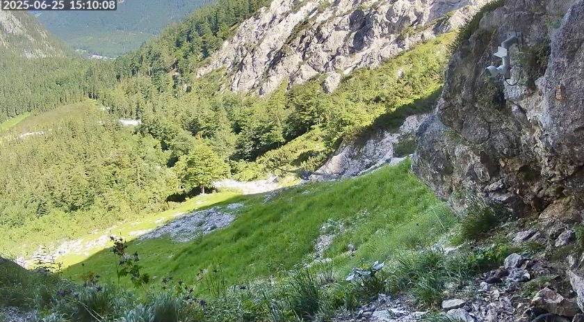 11.40 h Die beiden Mädels suchen, ob noch was zum Mittagessen da ist, Luisa bei der Tränke, Generl am unteren Nest.