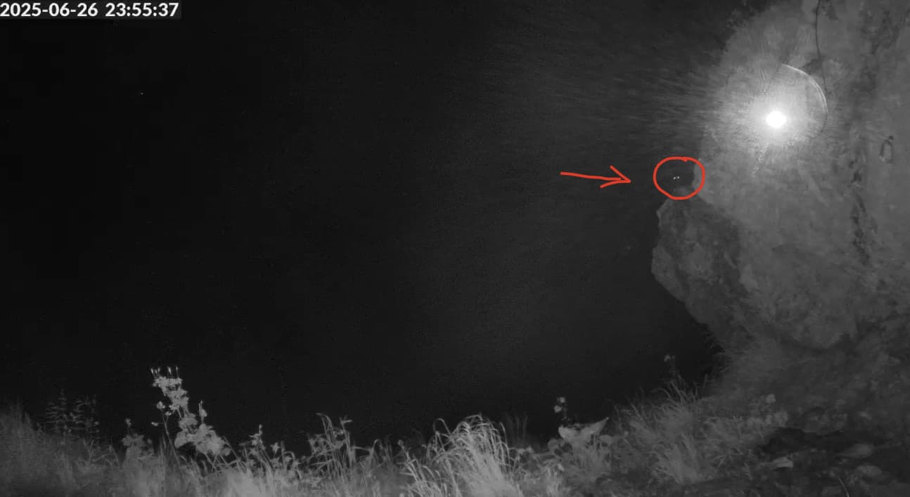 Wenn es größer wäre, hätte ich auf einen Uhu getippt, der auf den leckeren Steinmarder wartet und verzehren will. Aber wenn es sich bewegt sieht man, daß es etwas kleineres ist. Den Kopfbewegungen und der Augenstellung nach jedenfalls ein Eulenvogel bei der Ansitzjagd, vmtl. ein Steinkäuzchen.