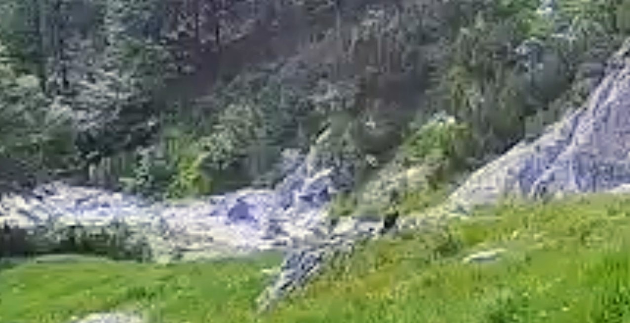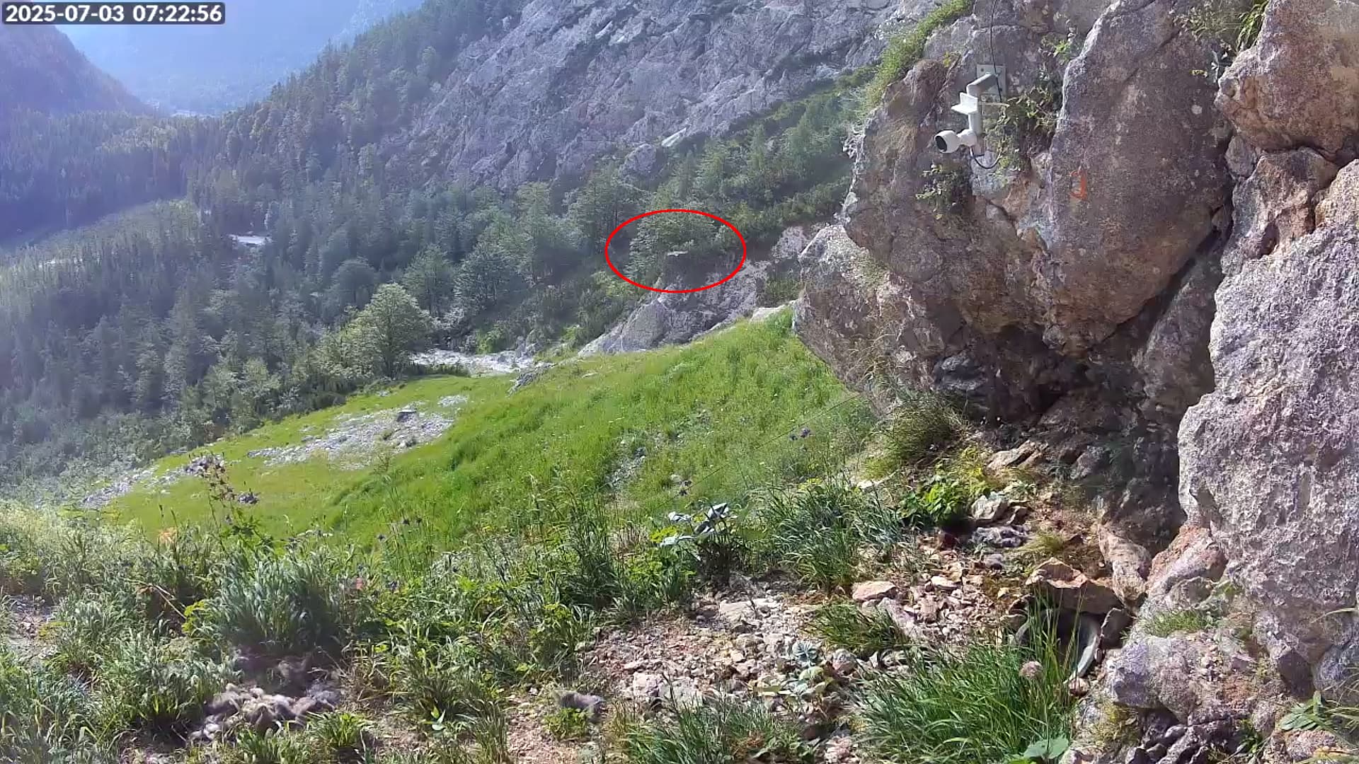 Um 7.03 Uhr hat sich wahrscheinlich dasselbe Mädel in der Rinne hoch gearbeitet. Zuletzt habe ich sie unterhalb vom weißen dreieckigen Felsen gesehen.