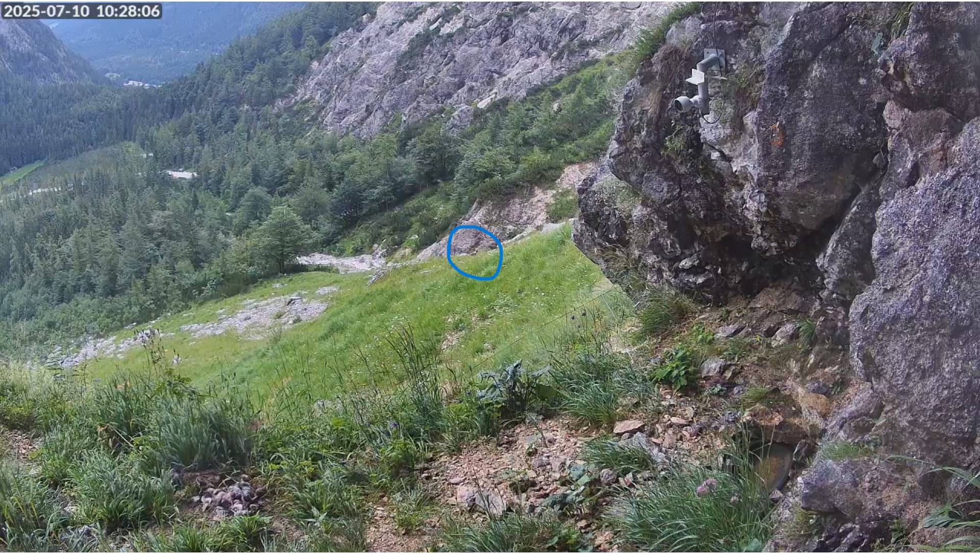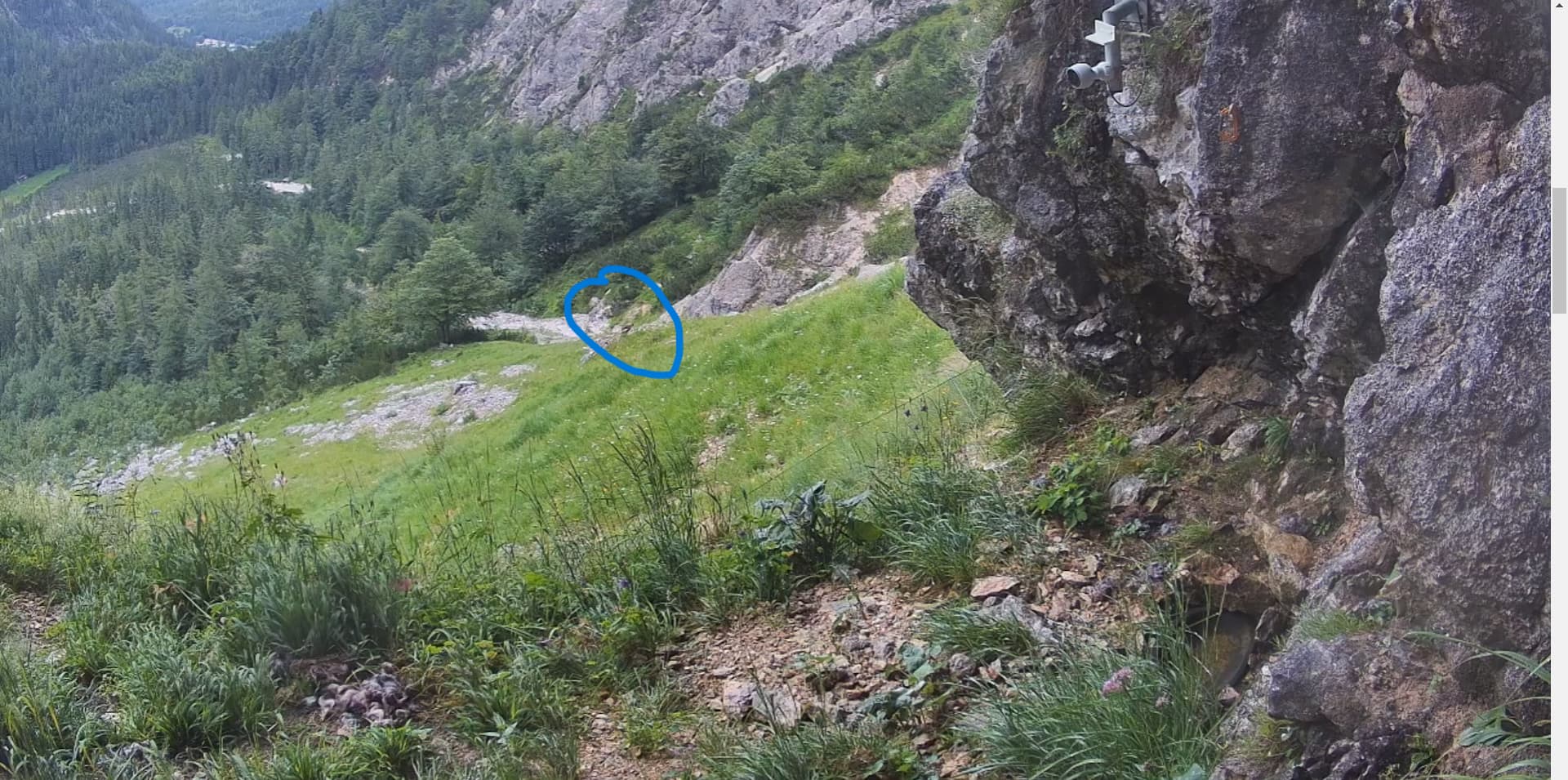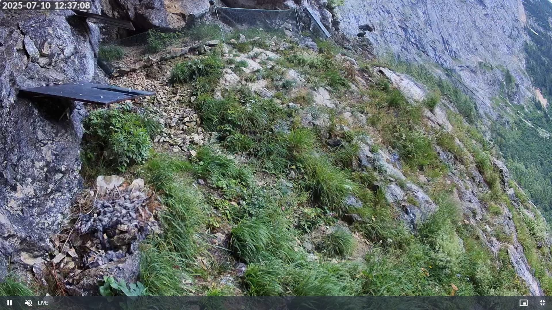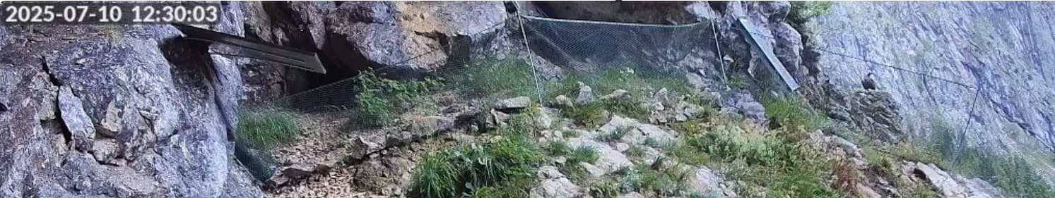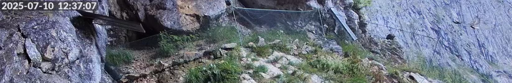 Also, wenn ich jetzt nicht total spinne, habe ich um 13:32 Uhr auf der Cam2 zwei Bartis miteinander von links nach rechts fliegen gesehen. Das ging leider sehr schnell. Aber der eine Barti saß zur selben Zeit, und sitzt immer noch auf dem Gamsfelsen.