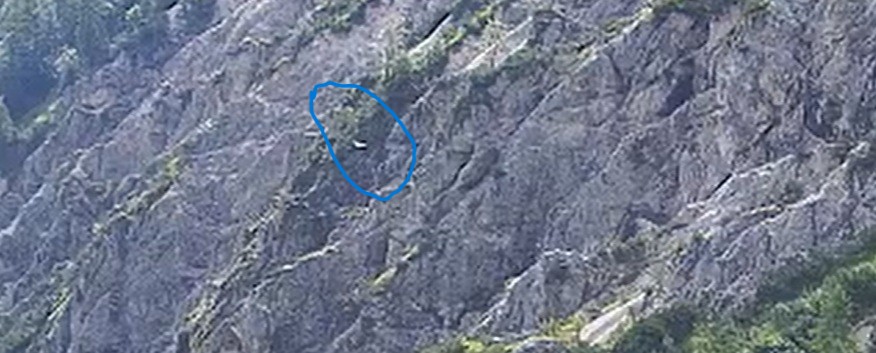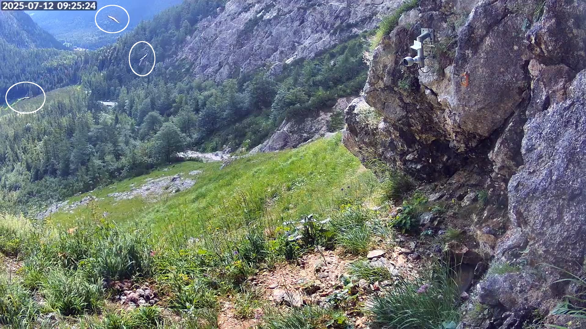 Das interessante war er oder sie flog kerzengerade nach oben bis zum Bildrand( Felsen) auf der Webcam