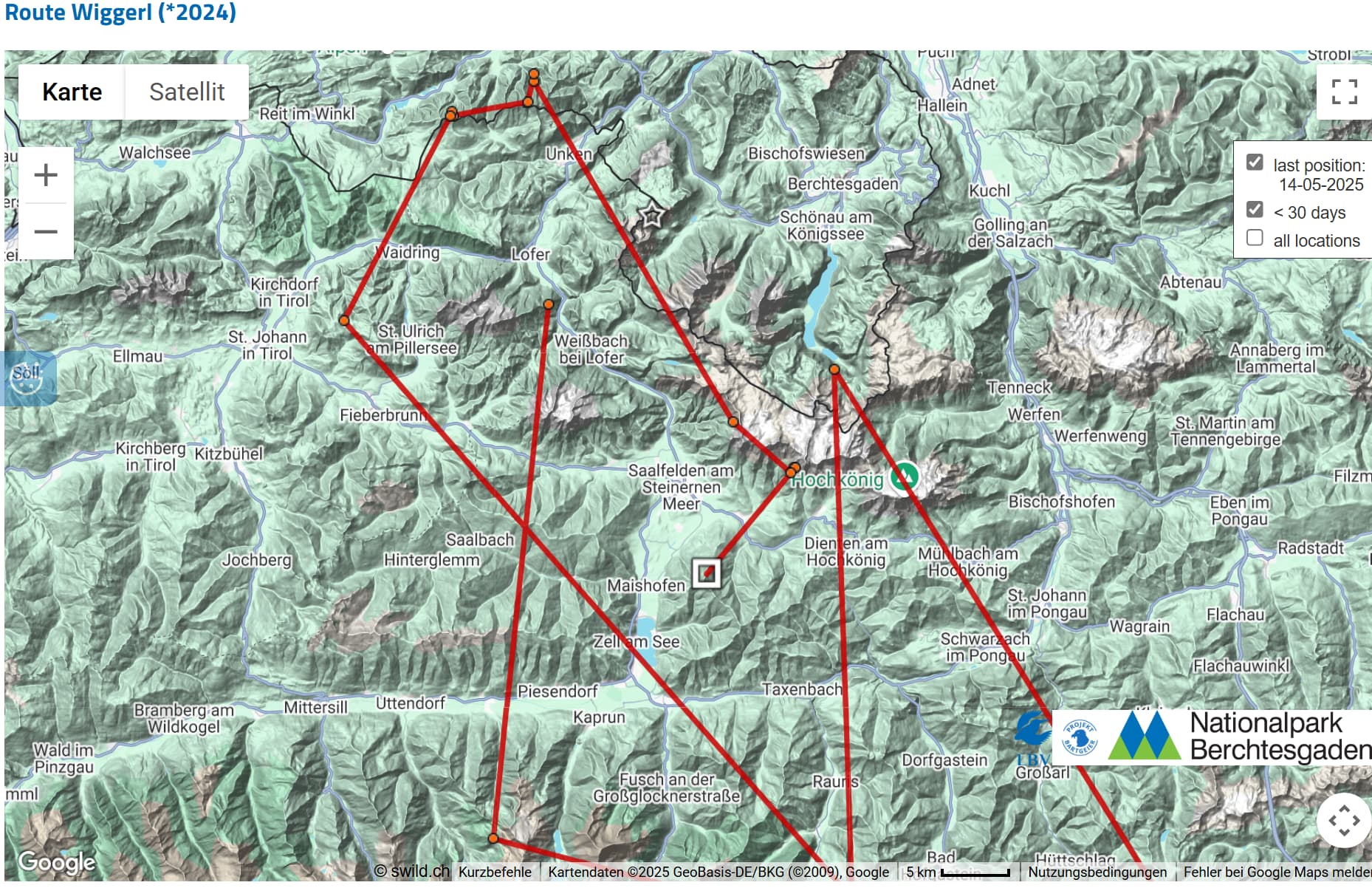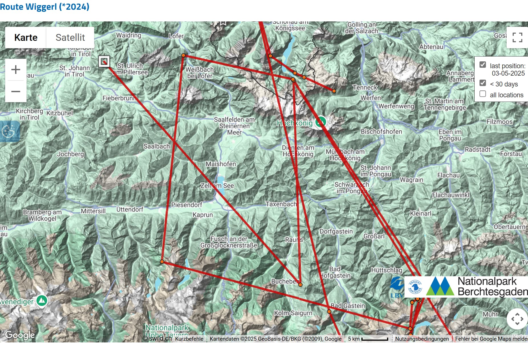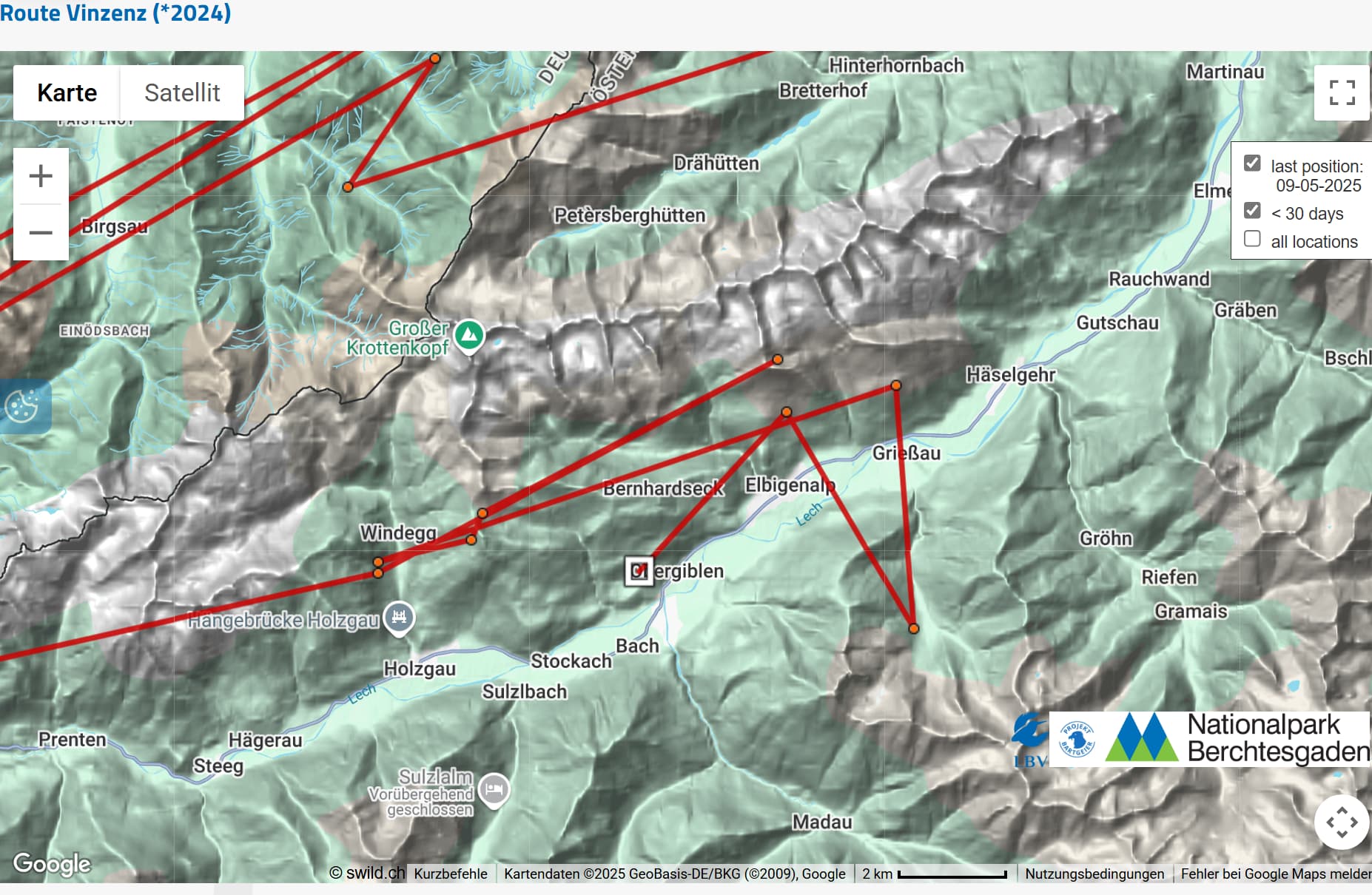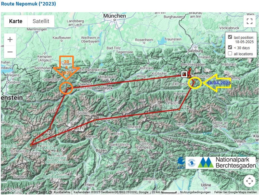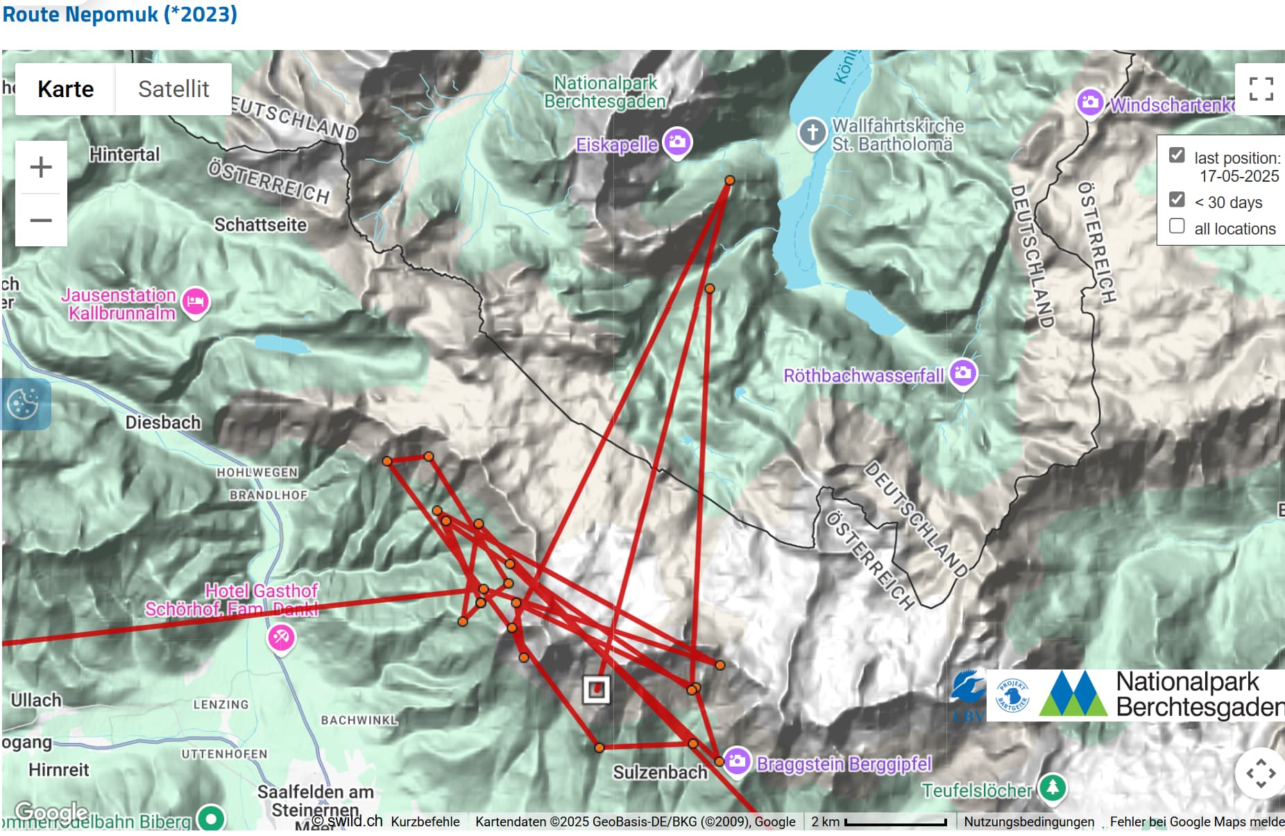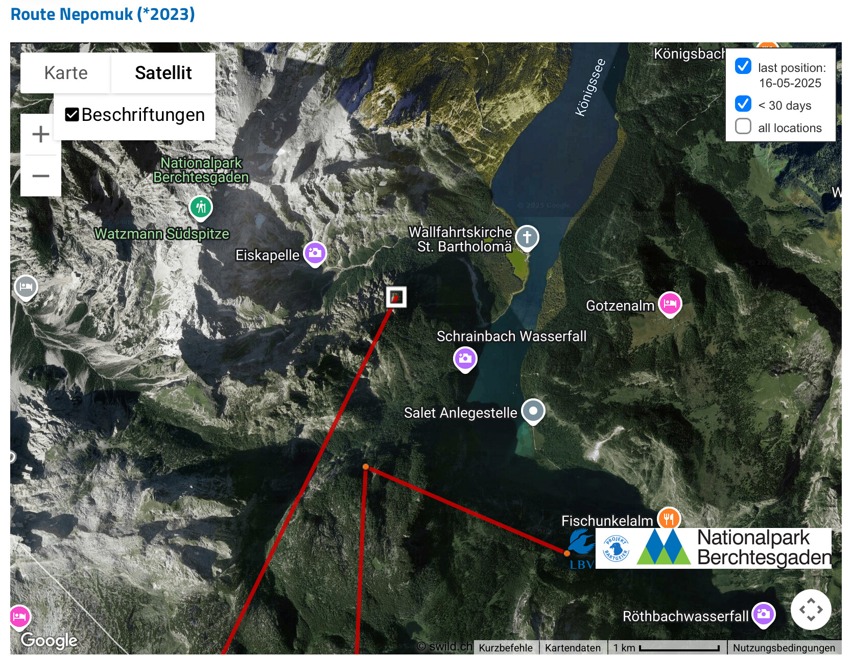 Nepomuk ist immer noch nahe der Heimat im Steinernen Meer (Stand 06.05.).