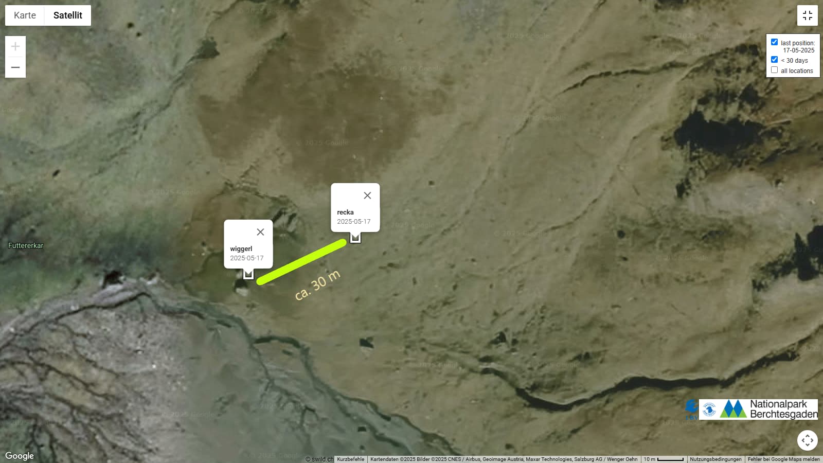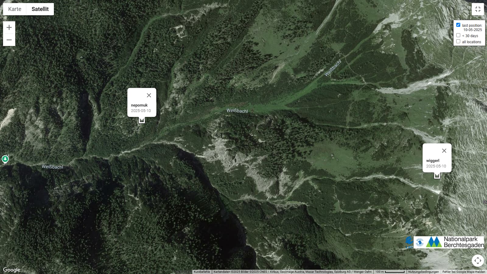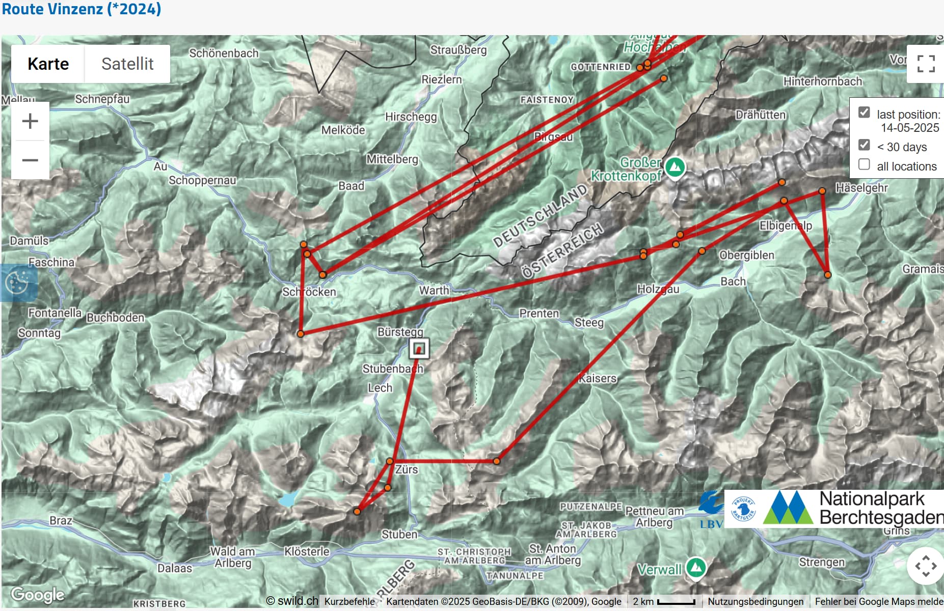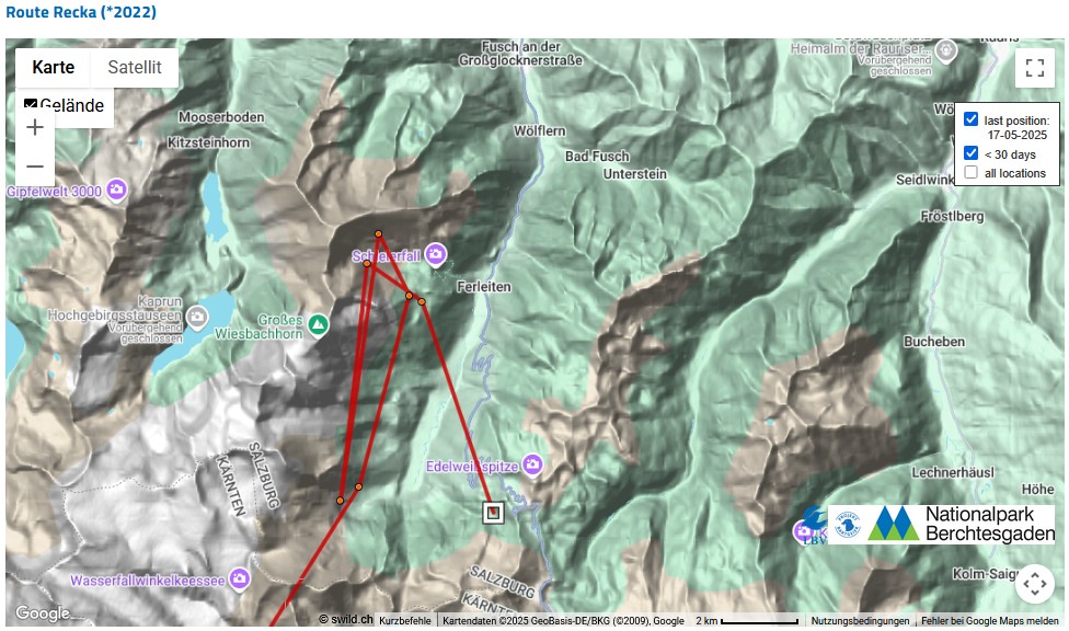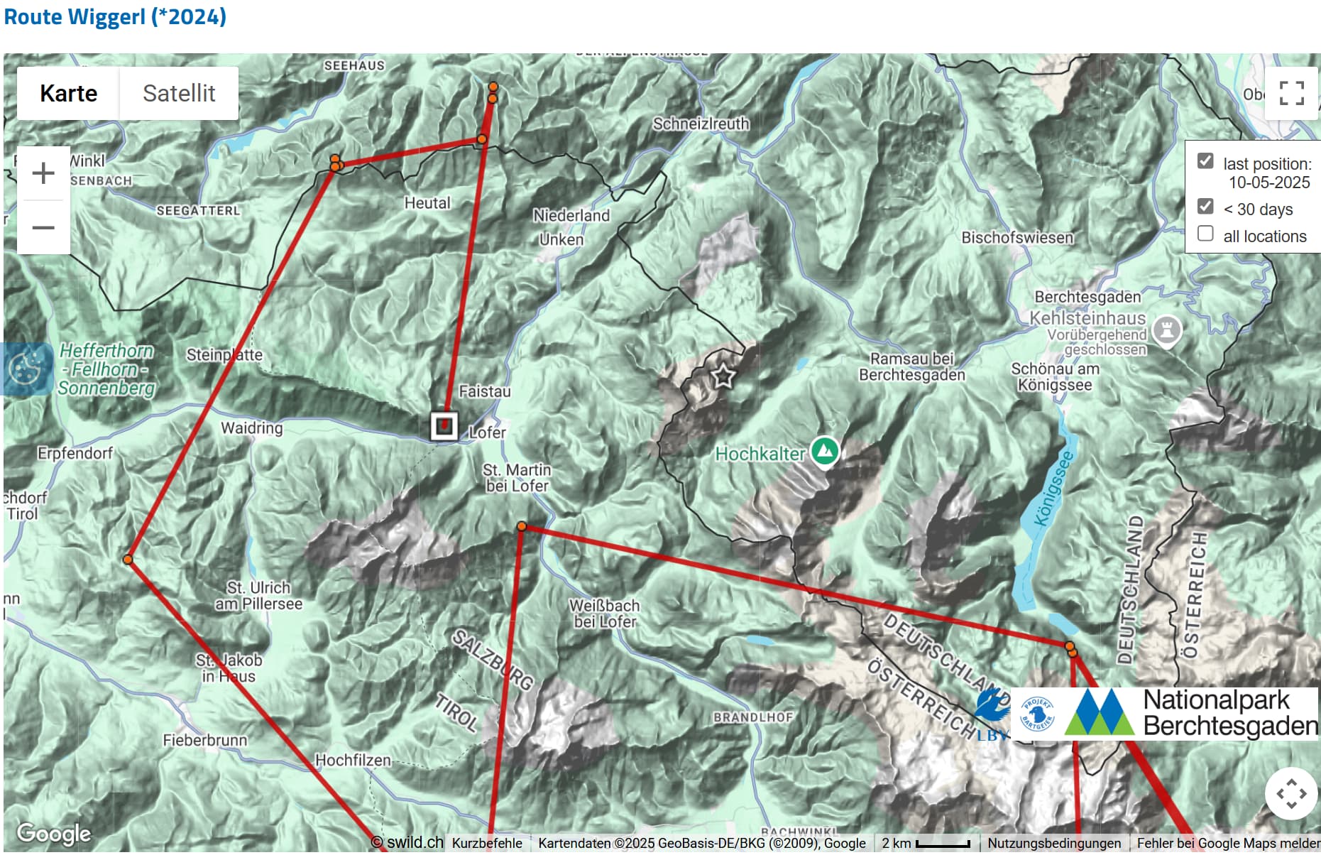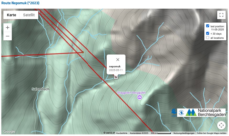 Nepomuk ist immer noch nahe der Heimat im Steinernen Meer (Stand 06.05.).