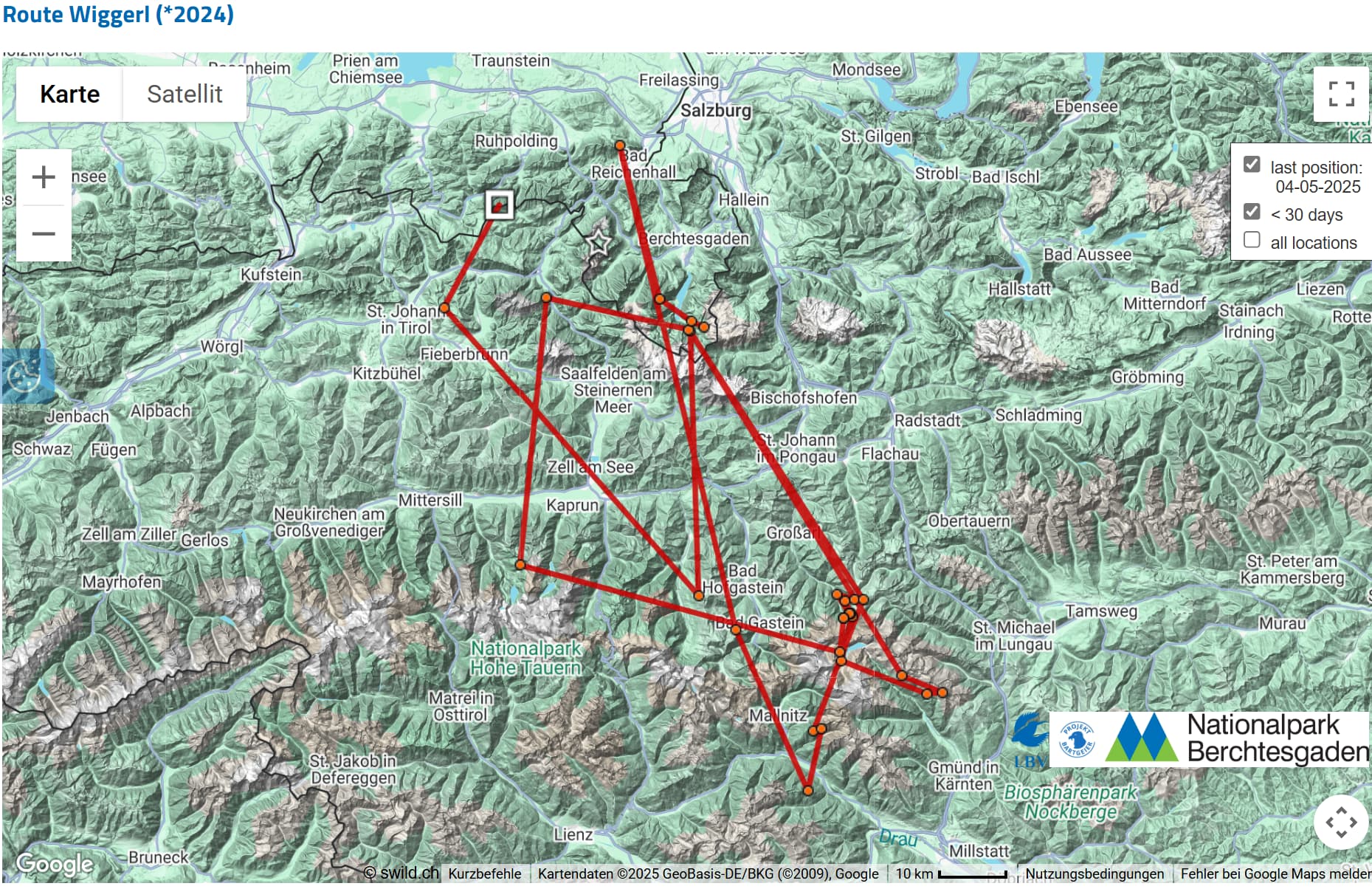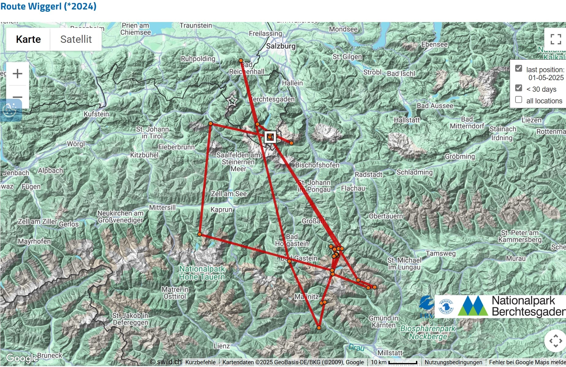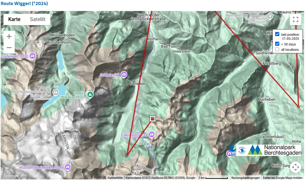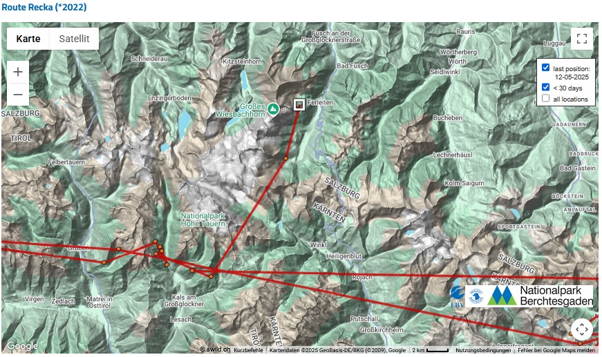 Der Wiggerl ist nochmal ein Stück weiter südlich geflogen, er ist jetzt auch beim Nationalpark Hohe Tauern