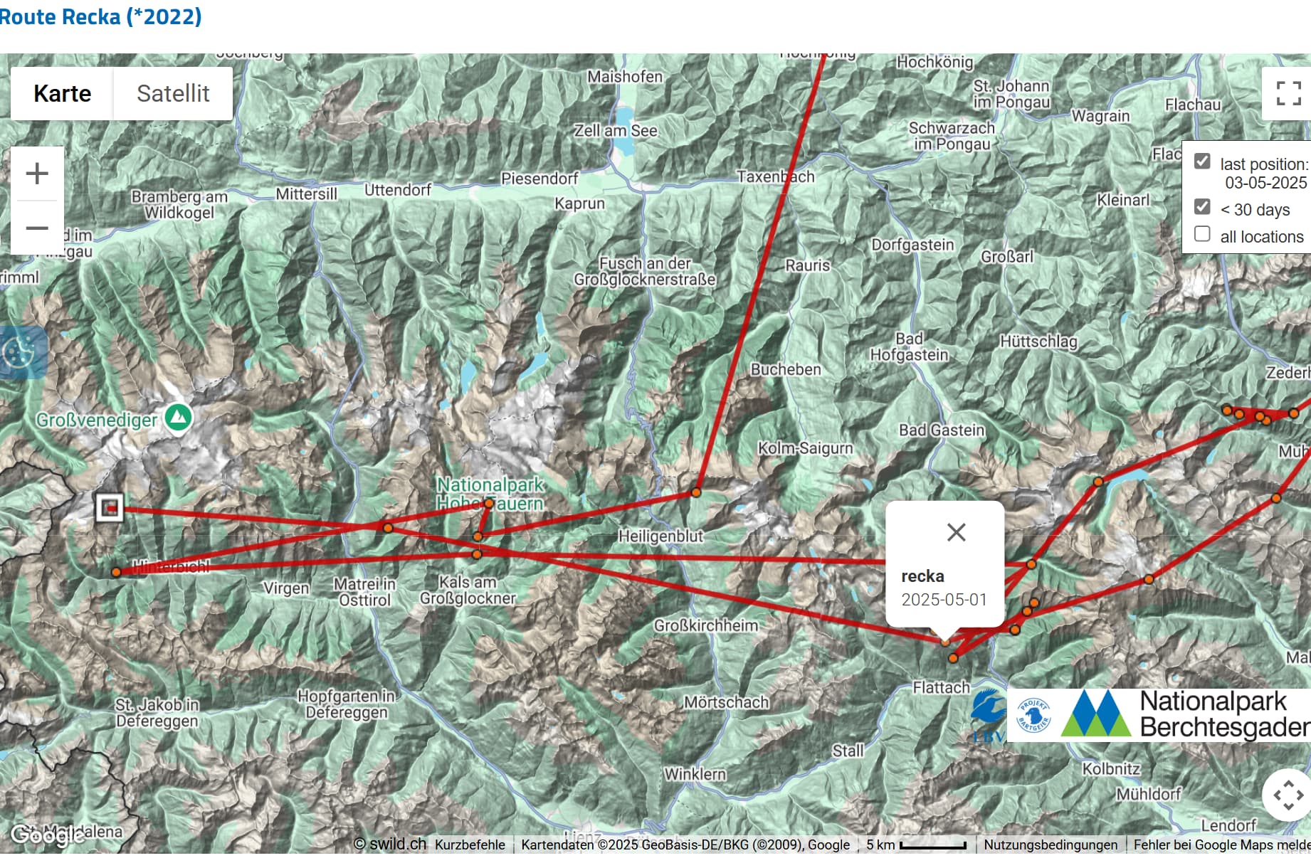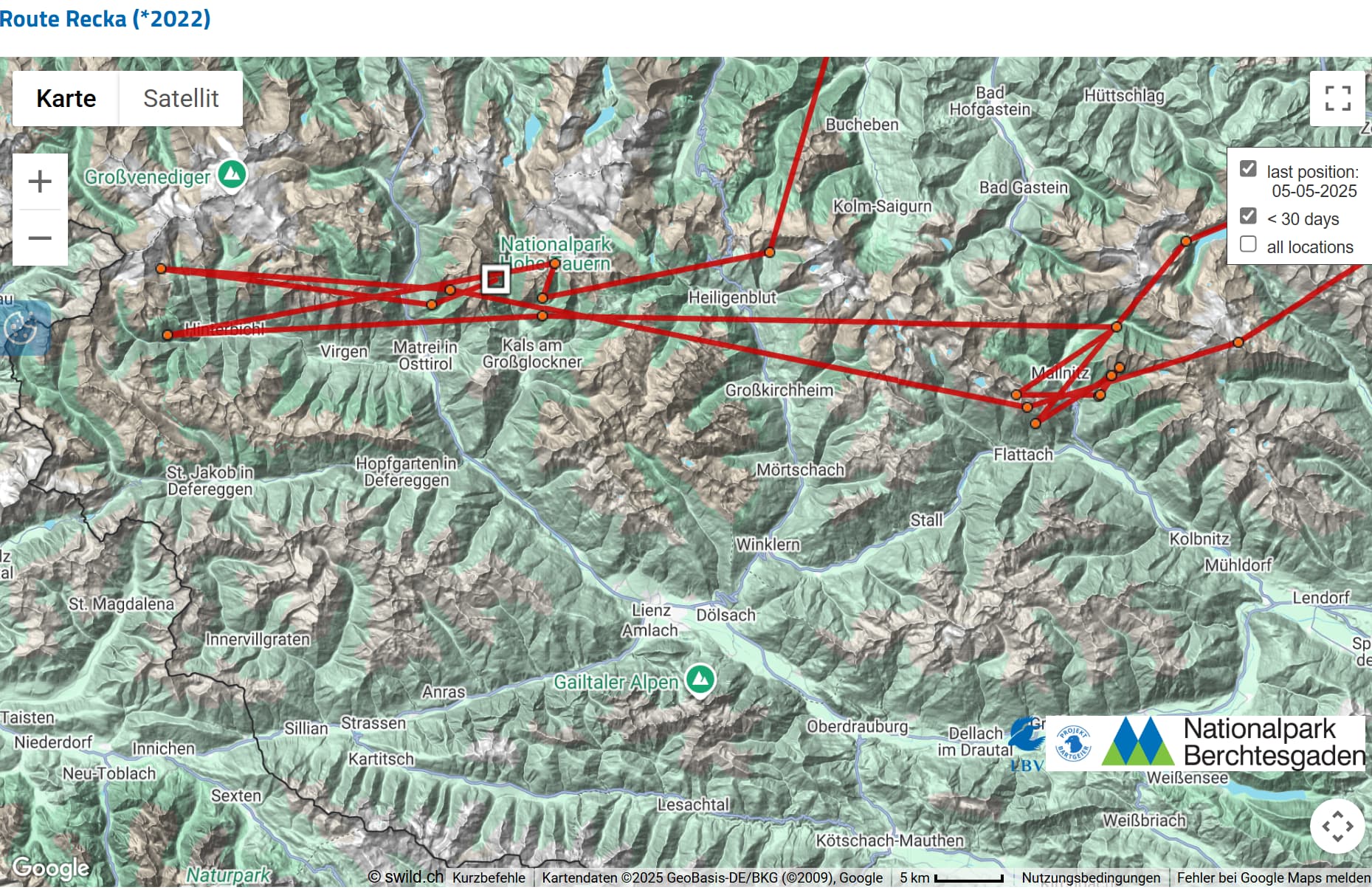 Die Recka ist nach wie vor in den Hohen Tauern, von den anderen gibts derzeit keine neuen Daten