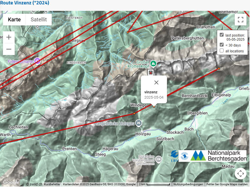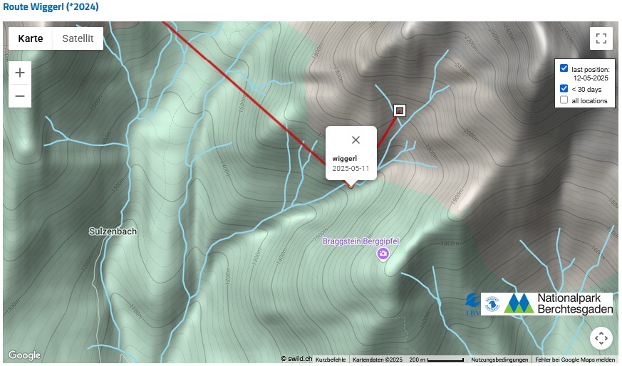 Wiggerl ist schon seit ein paar Tagen in den Chiemgauer Alpen (beim Dürrnbachhorn) unterwegs (Stand 07.05.).