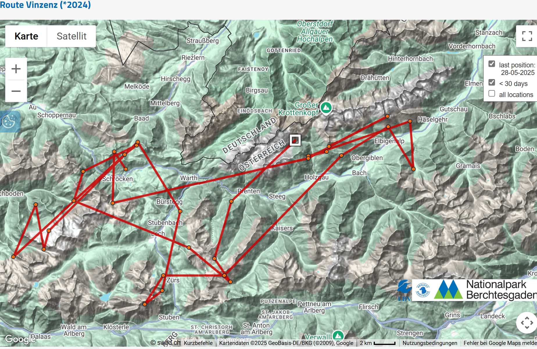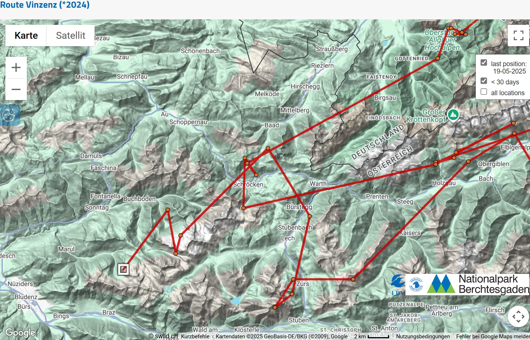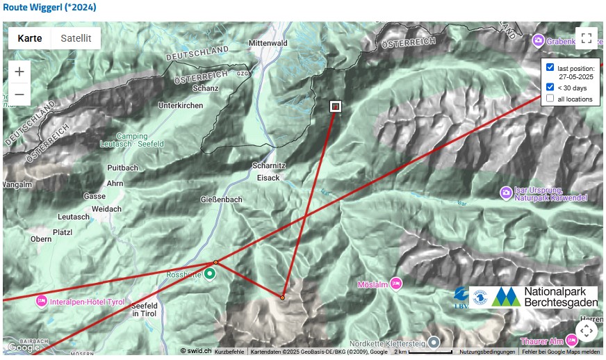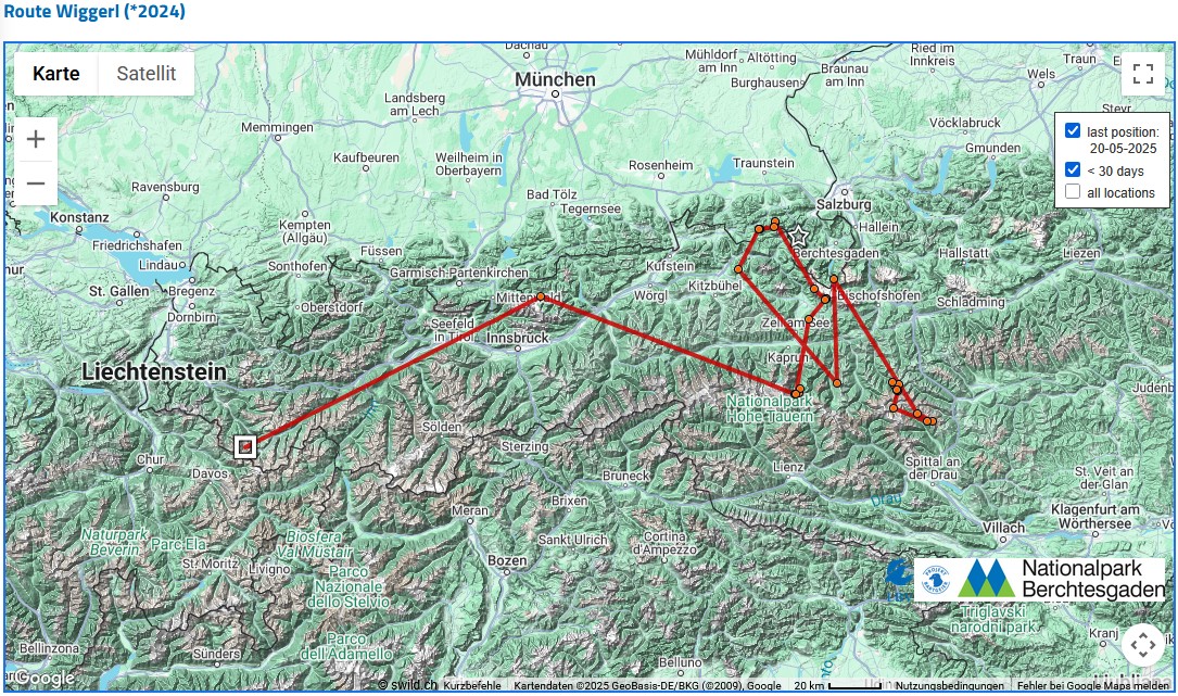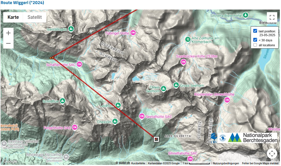 Wiggerl - ein Wahnsinns-Weitflug! Innerhalb von 2 Tagen von den Hohen Tauern via Karwendel in die Silvretta. Nun ist er fast in der Schweiz.