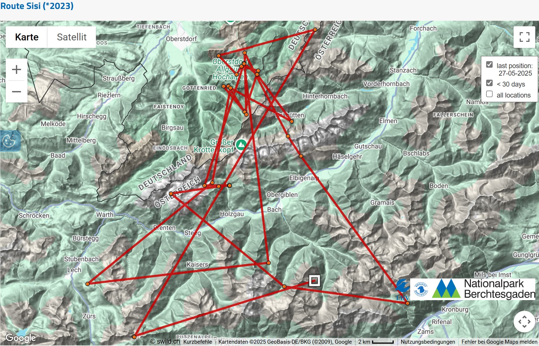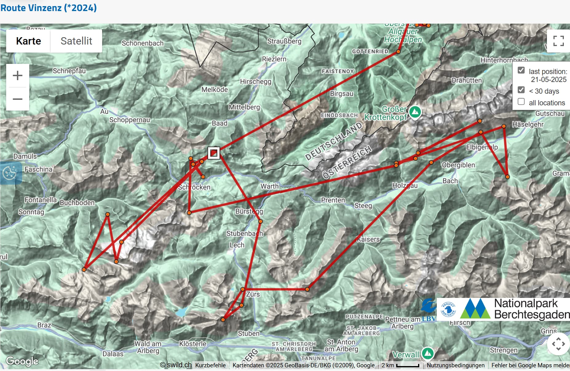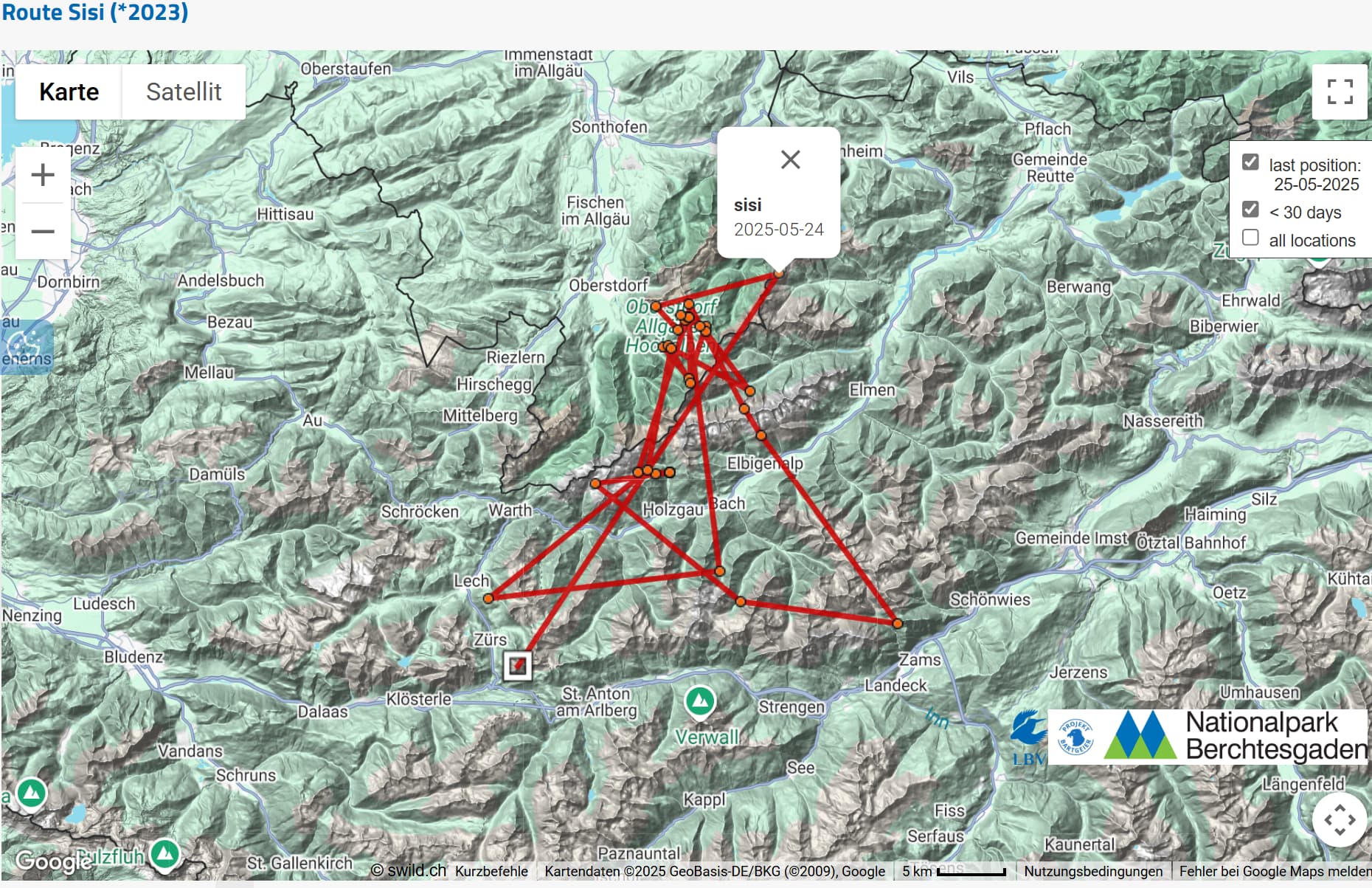 Wiggerl - ein Wahnsinns-Weitflug! Innerhalb von 2 Tagen von den Hohen Tauern via Karwendel in die Silvretta. Nun ist er fast in der Schweiz.