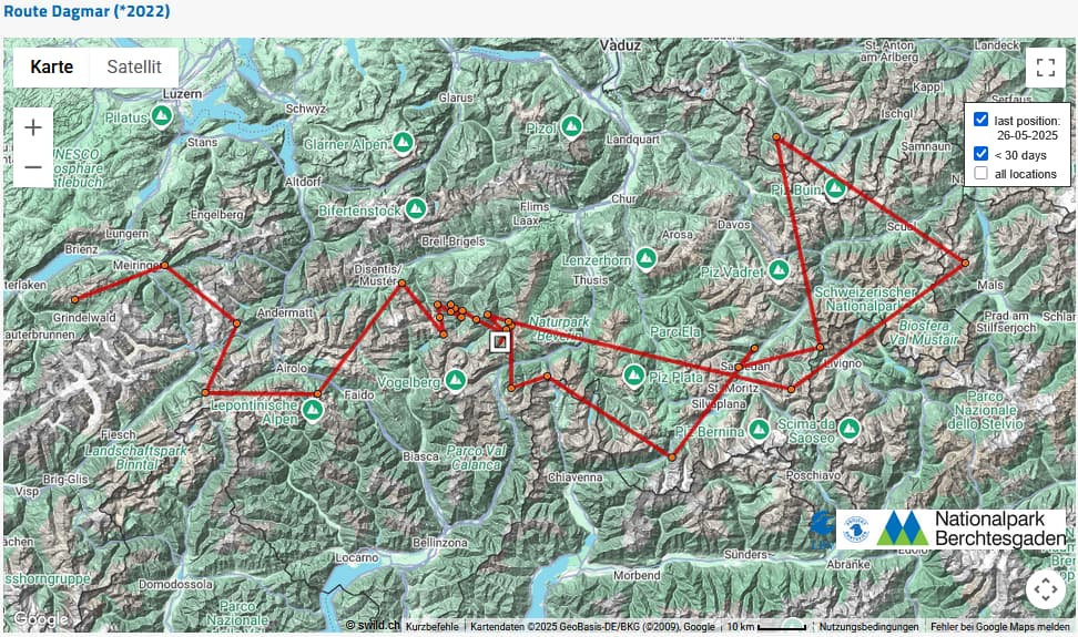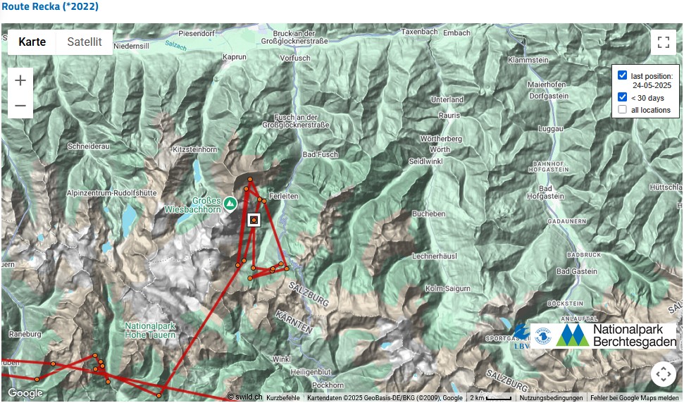 Von Recka haben wir aktuelle Daten. Sie ist noch im Fuschertal in den Hohen Tauern.
