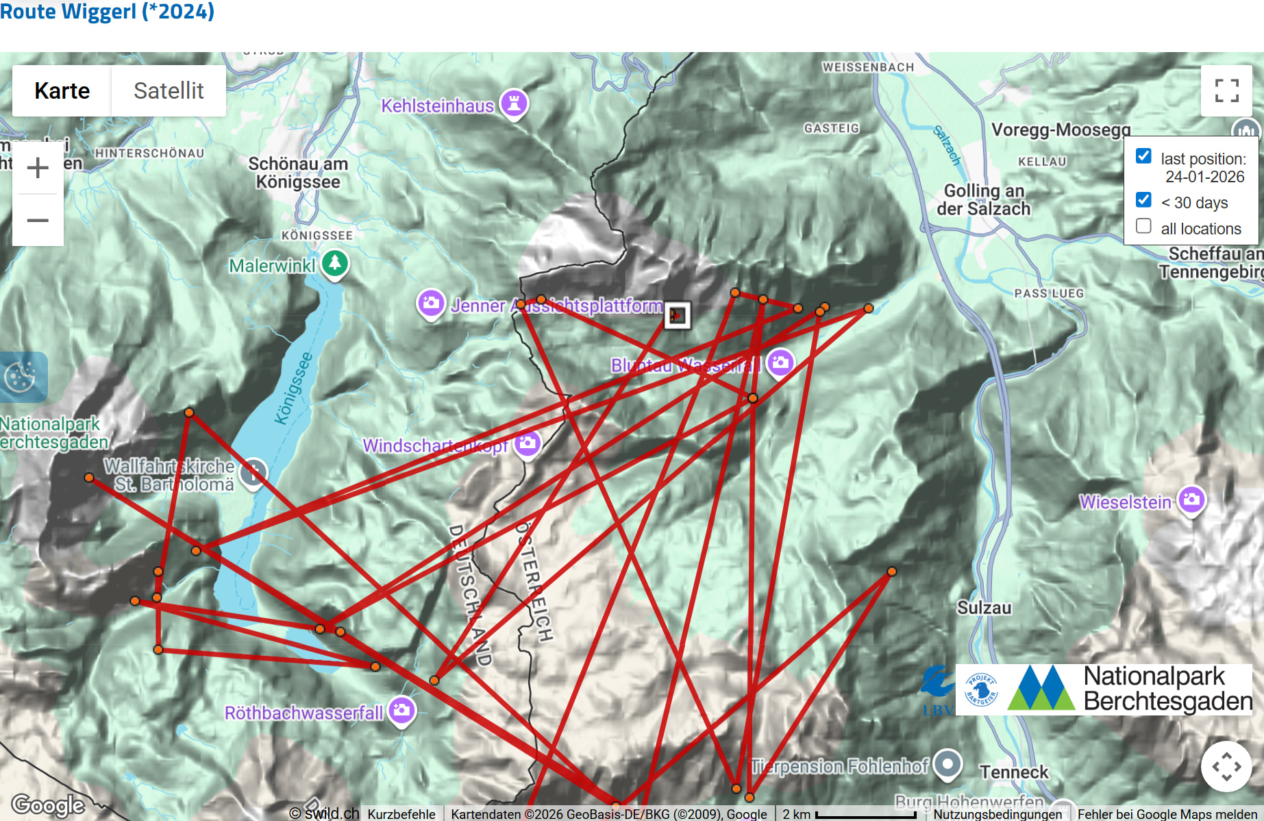 Wie im Blog mehrfach beschrieben gibt es in Realität noch einen weiteren Punkt, der am 20.03. hereingekommen ist. Da es sich bei diesem leider um einen sog. “leeren” Punkt handelt (diese entstehen bei schlechtem Empfang und es werden keine zusätzlichen Informationen wie sonst übermittelt) kann dieser im Wildlife Monitor und damit in der öffentlichen Karte nicht dargestellt werden.