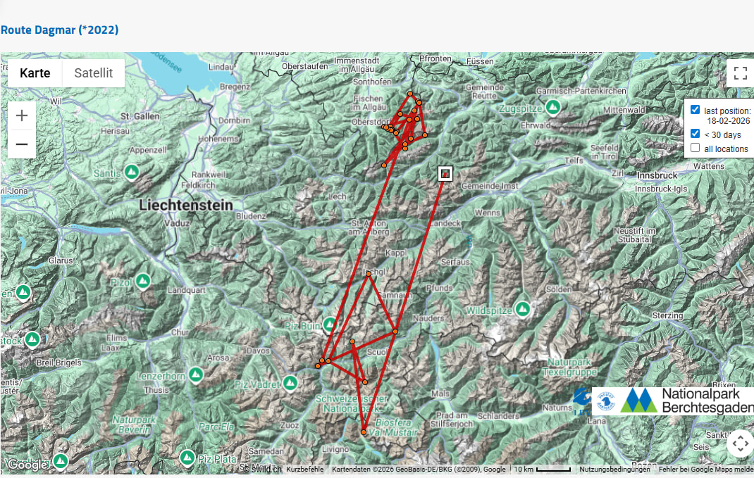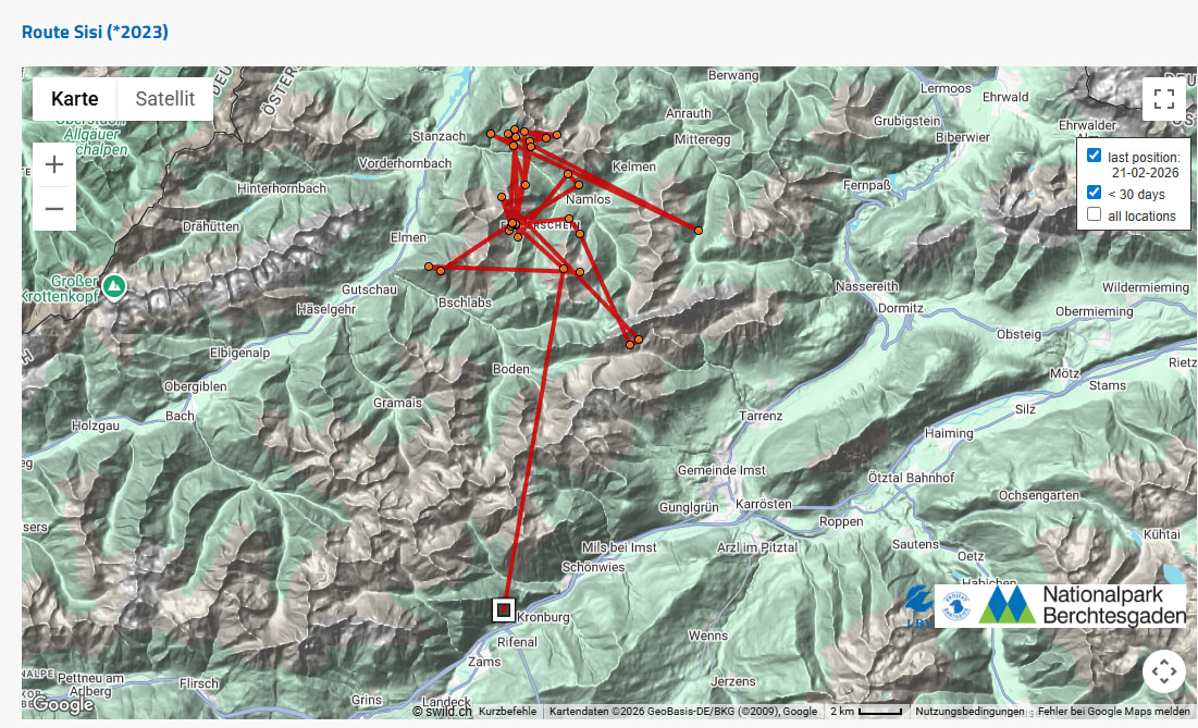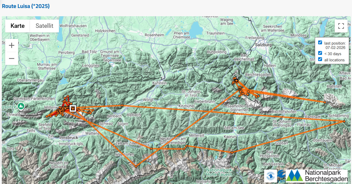 Die GPS-Karte von Recka wurde im Herbst in Absprache mit dem Nationalpark Hohe Tauern stillgelegt, da in einem Bereich in dem sie sich auch viel herumgetrieben hat, eine besonders sensible Situation vorherrscht.