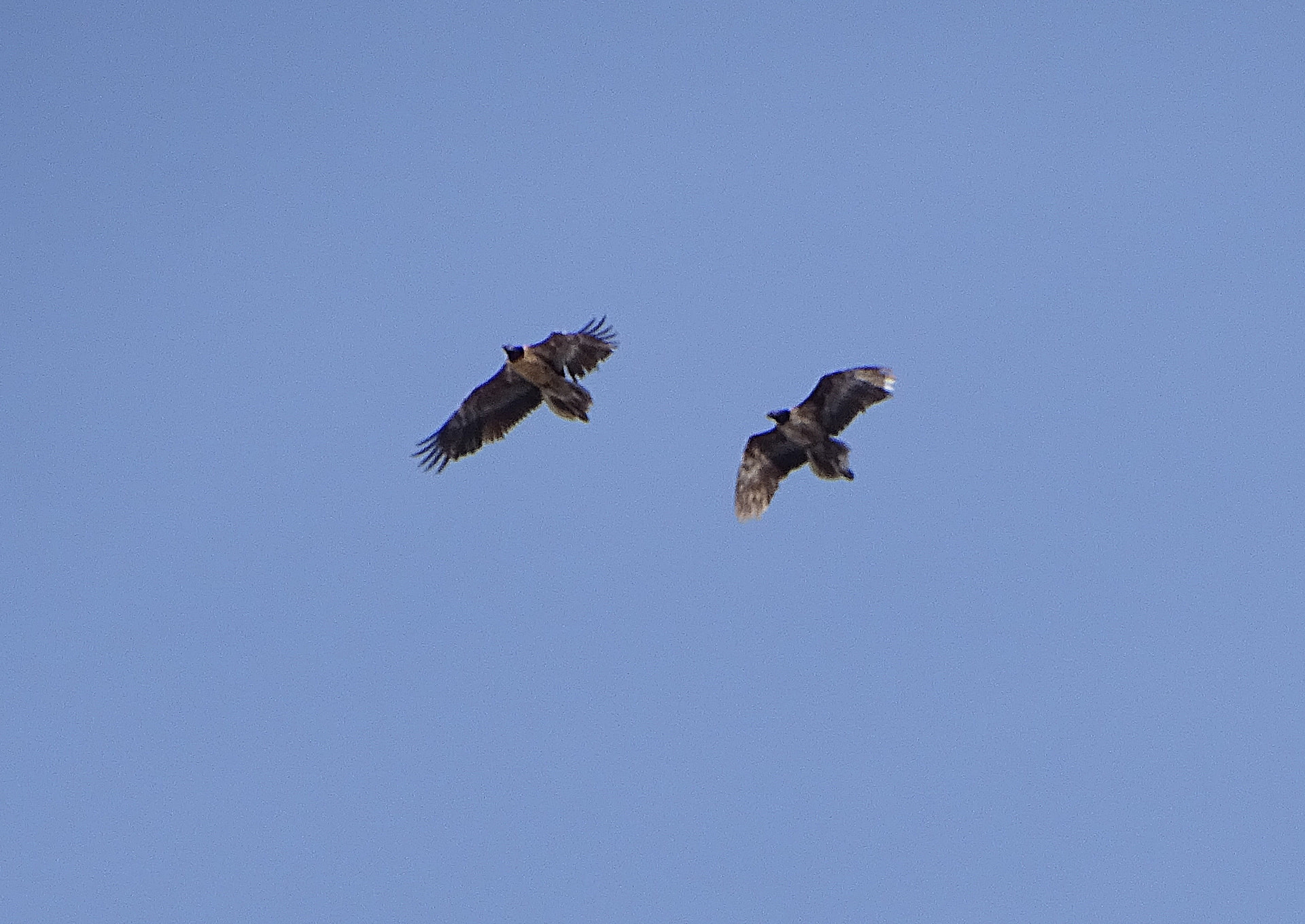 Denke ebenfalls, dass mindestens einer der beiden ein ausgewilderter Bartgeier ist. Auf dem ersten Foto erkenne ich noch gebleichte Federn auf den Flügeln auf der einen Seite.