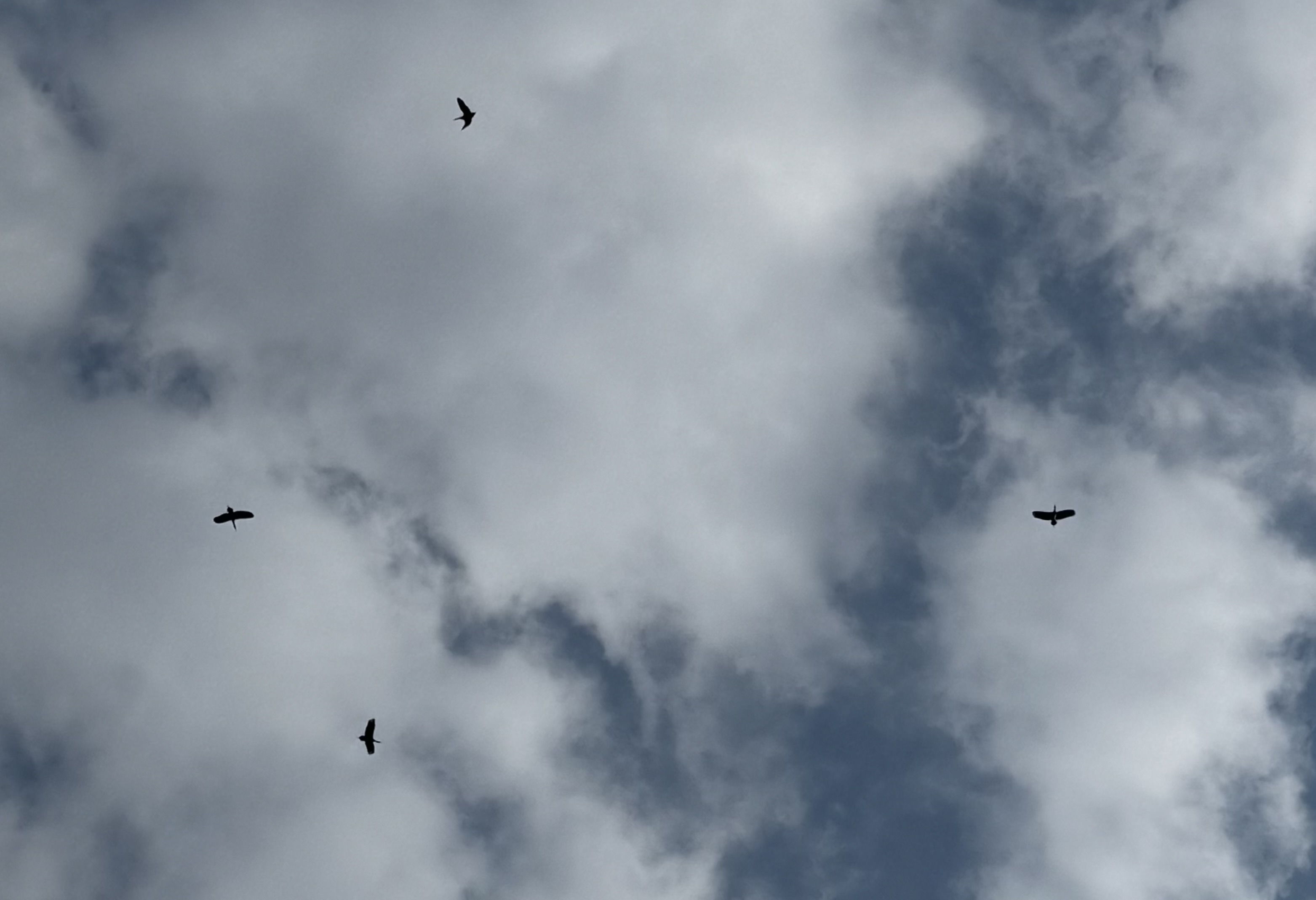 Gerade sind diese 4 Störche über über uns gekreist … leider war es schwer zu erkennen ob es Schwarzstörche waren… aber sie sind hier am Zellsee heimisch.