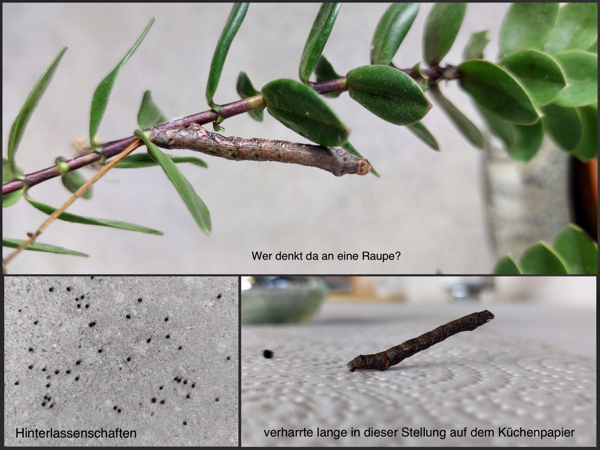 Wundere mich seit Tagen über Hinterlassenschaften, konnte aber nichts entdecken, nur das „vertrocknete Hölzchen“. Wollte es entfernen und da bewegt es sich! ![]()