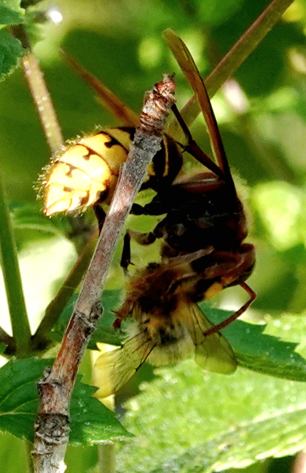 Seit Tagen beobachte ich eine Hornisse im Garten. Setzen wollte sie sich nie. Heute hatte sie dann einen Grund dazu. ![]()