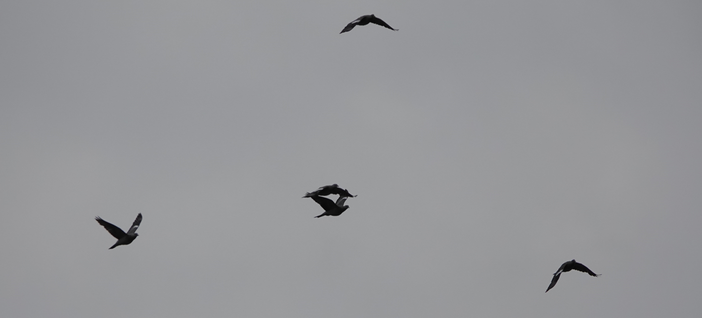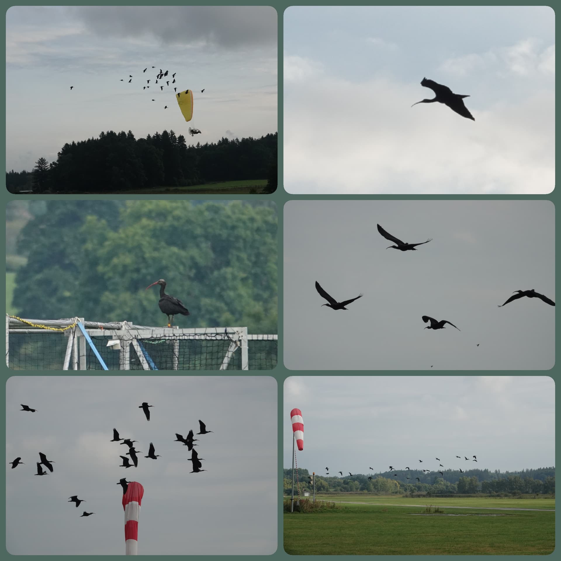 Die Waldrappen beim Versuch heute weiterzureisen, was leider nicht geklappt hat. Morgen auf ein neues