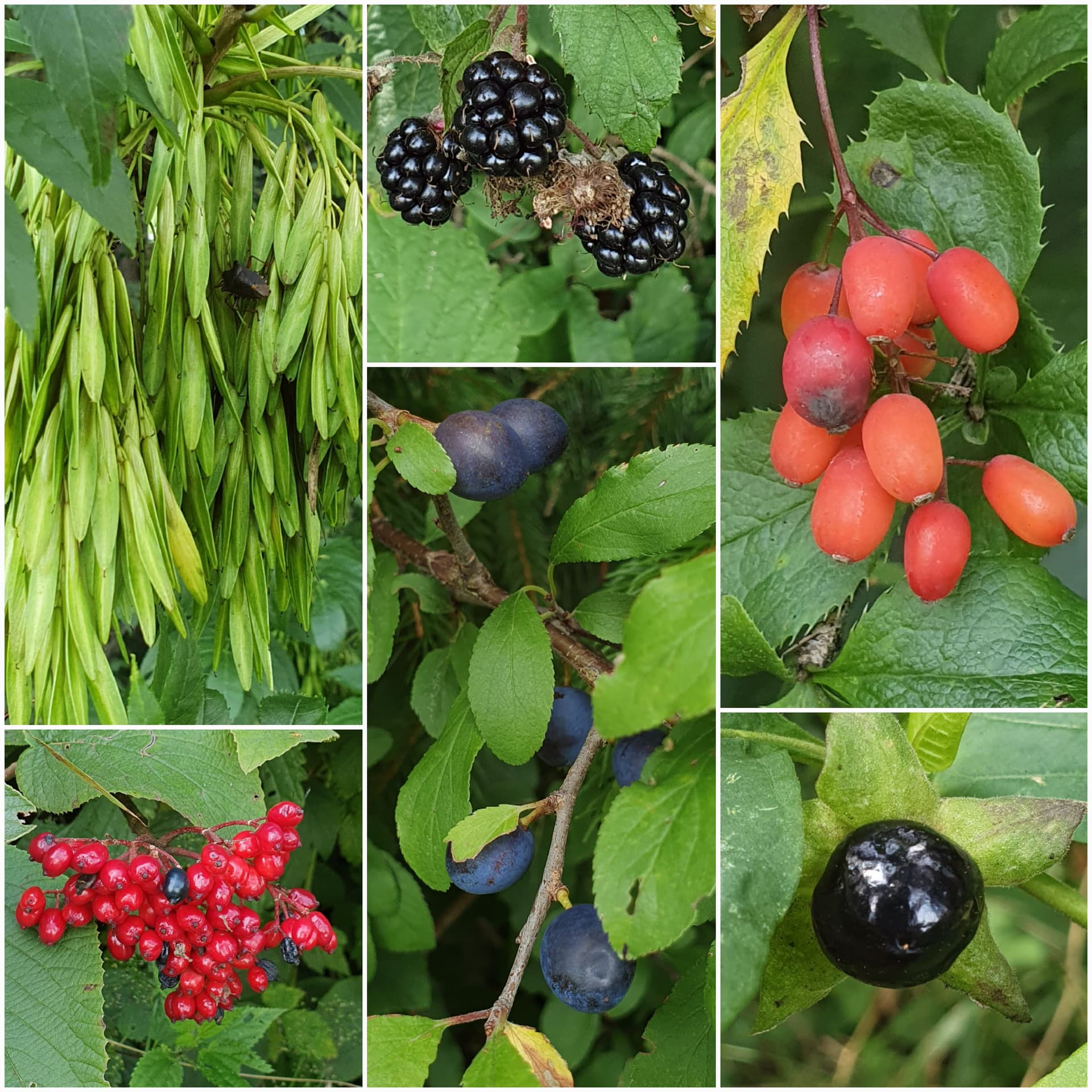Esche, Brombeere, Berberitze, Schneeball, Schlehe, Tollkirsche -