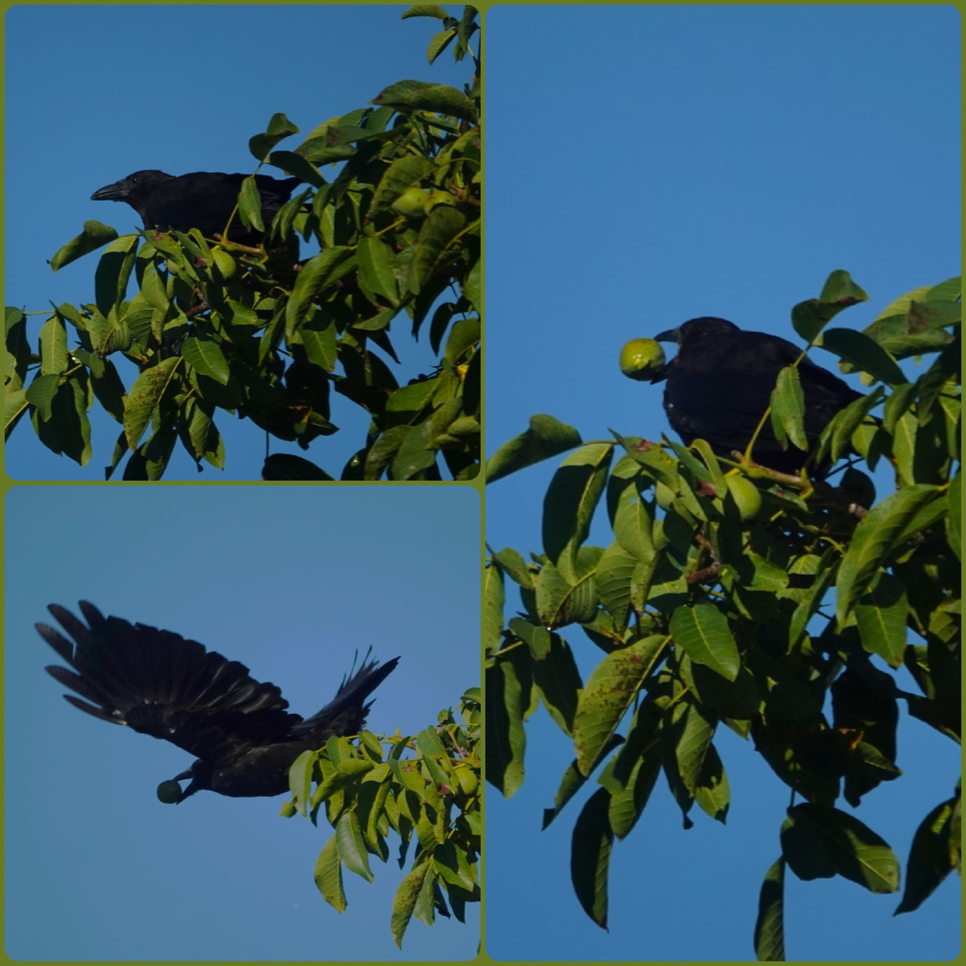 Die ersten Walnuss-Diebe sind am Werk, obwohl noch gar nicht reif