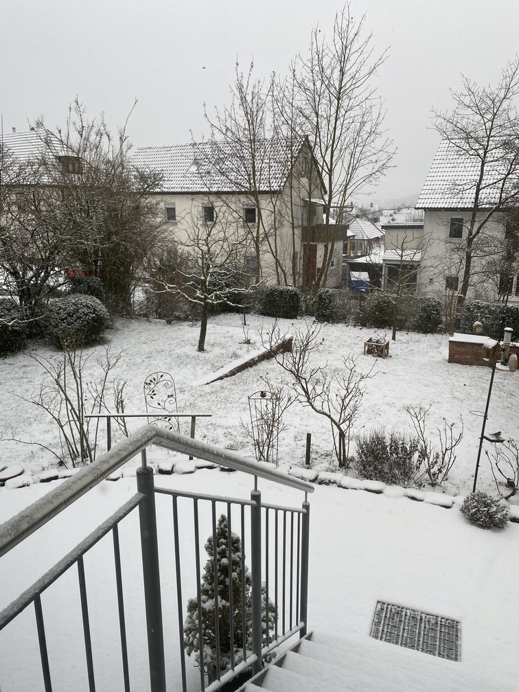 Geschneit hat es von früh um 7 Uhr bis Nachmittag um 15 Uhr bei uns hier.