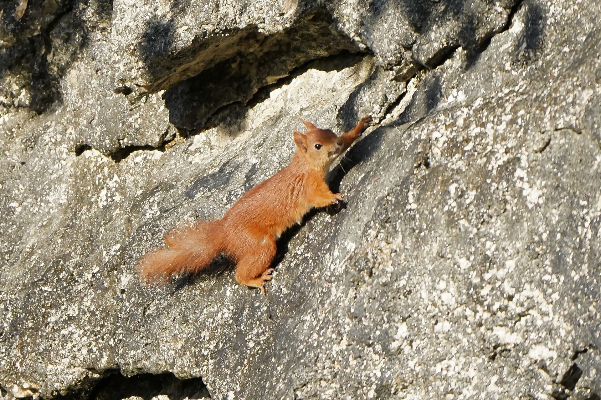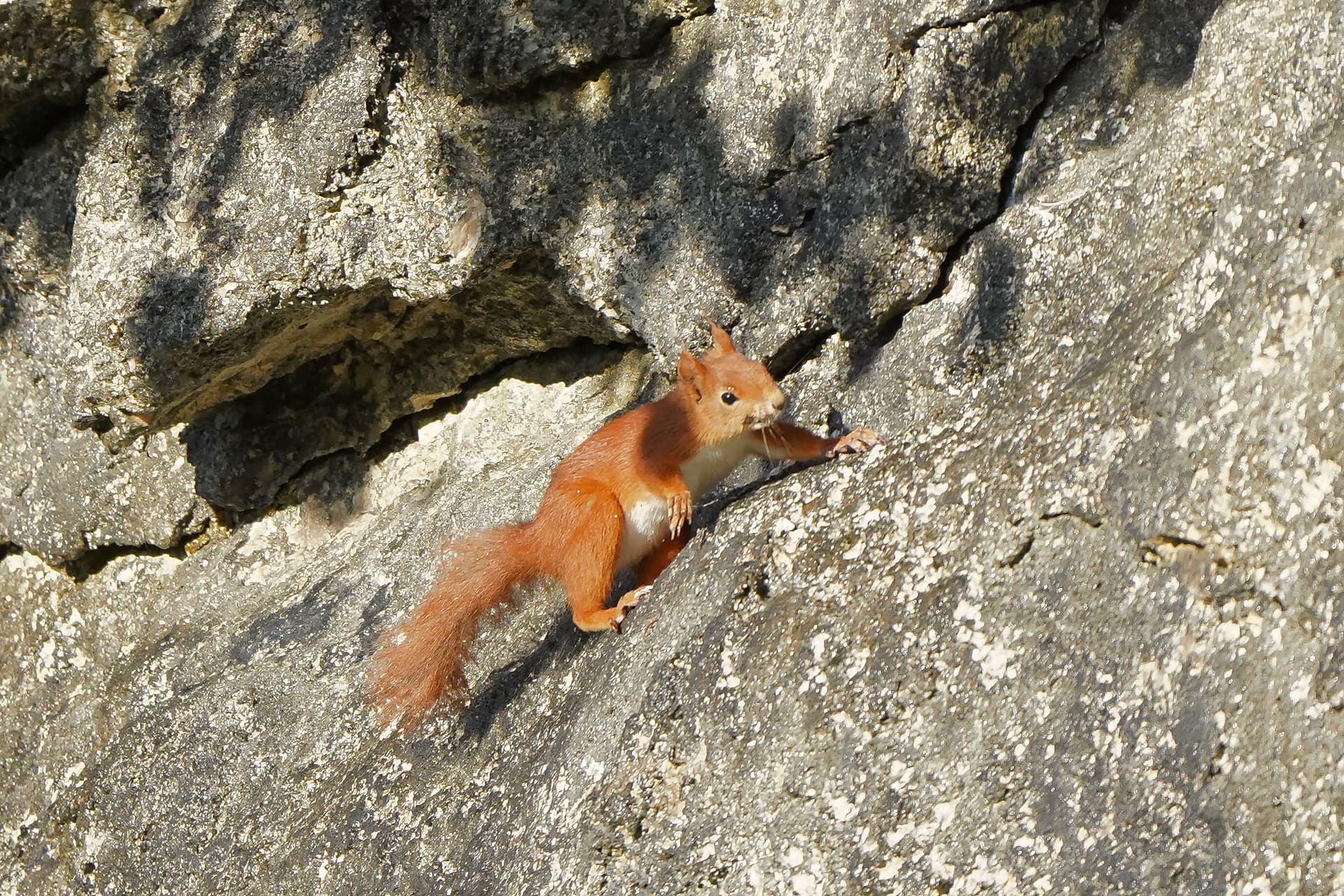 Das rote Eichhörnchen ist bestimmt ein seltener Nachbar und die Dohlen haben natürlich was von meiner Brotzeit probieren dürfen. Es wird Zeit das ich wieder Rosinen mit nehme und der Mauerläufer war auch wieder da und das nur 6 Meter von mir weg, aber nur für 2 Sekunden.