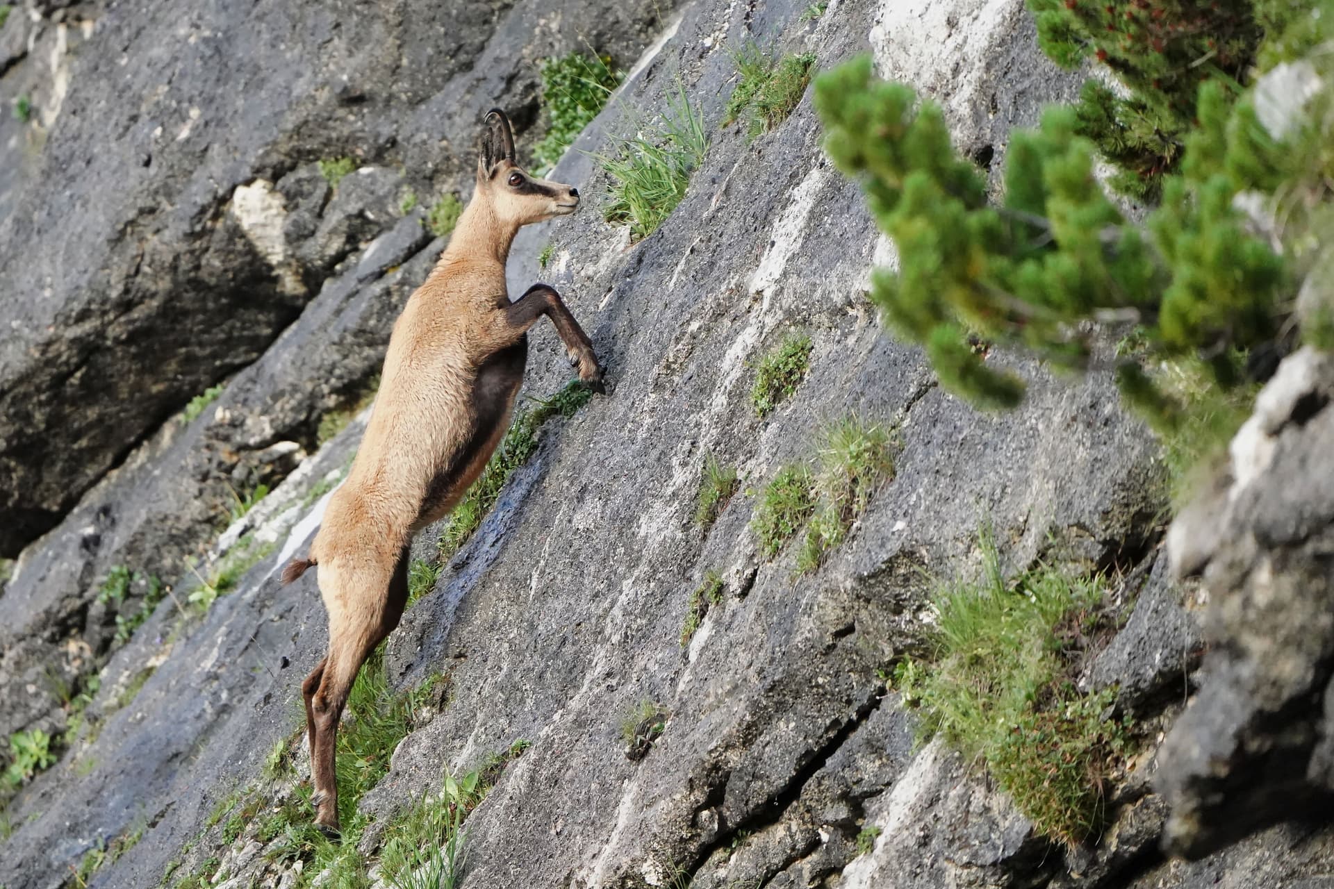 Gamsstudie auf der Flucht über glatten Fels…so gute Bilder sieht man in keiner Tierdoku!