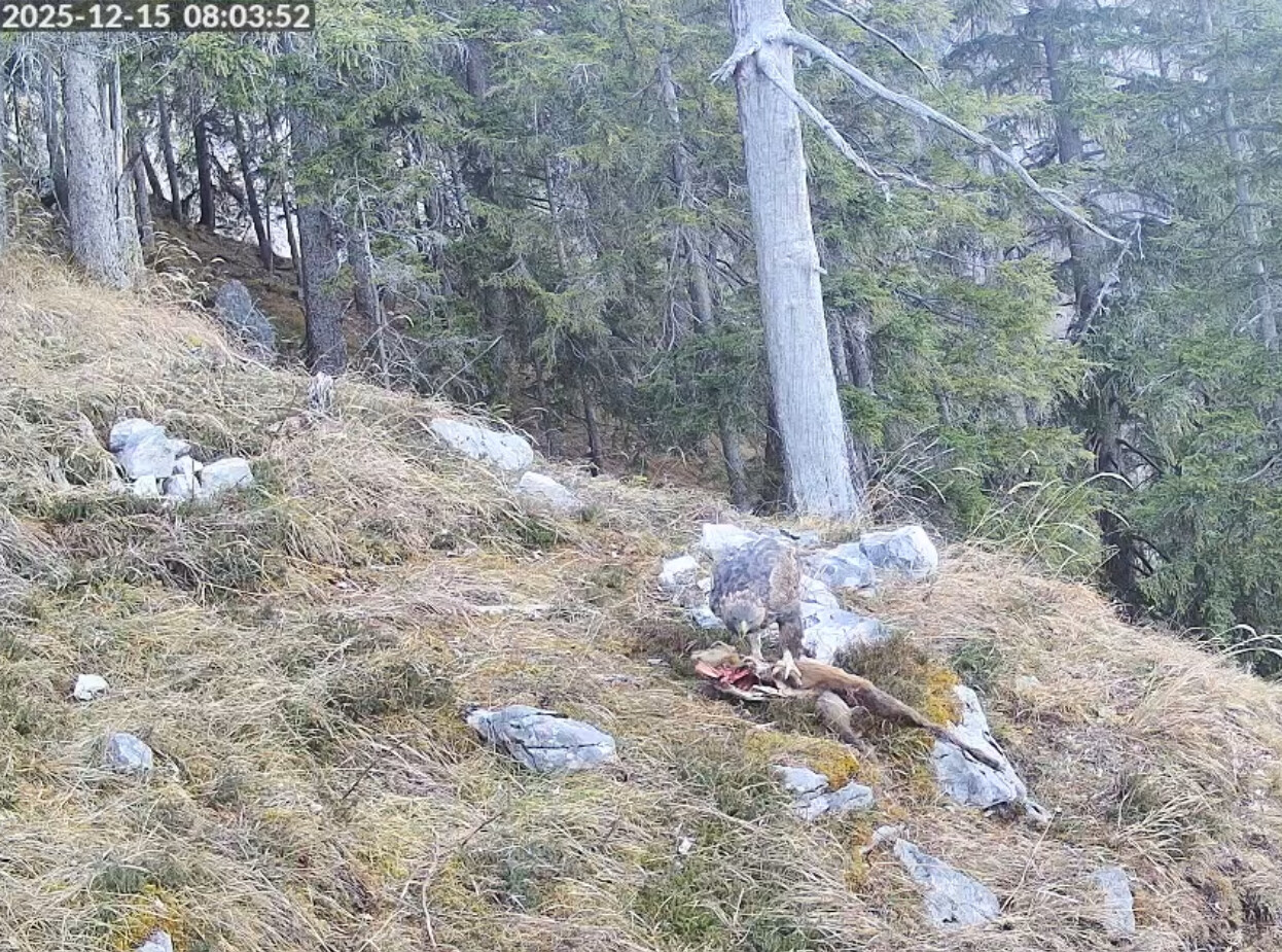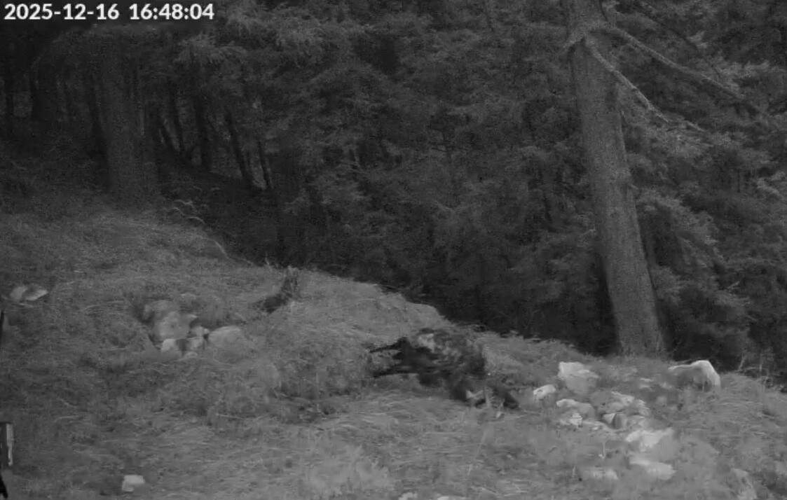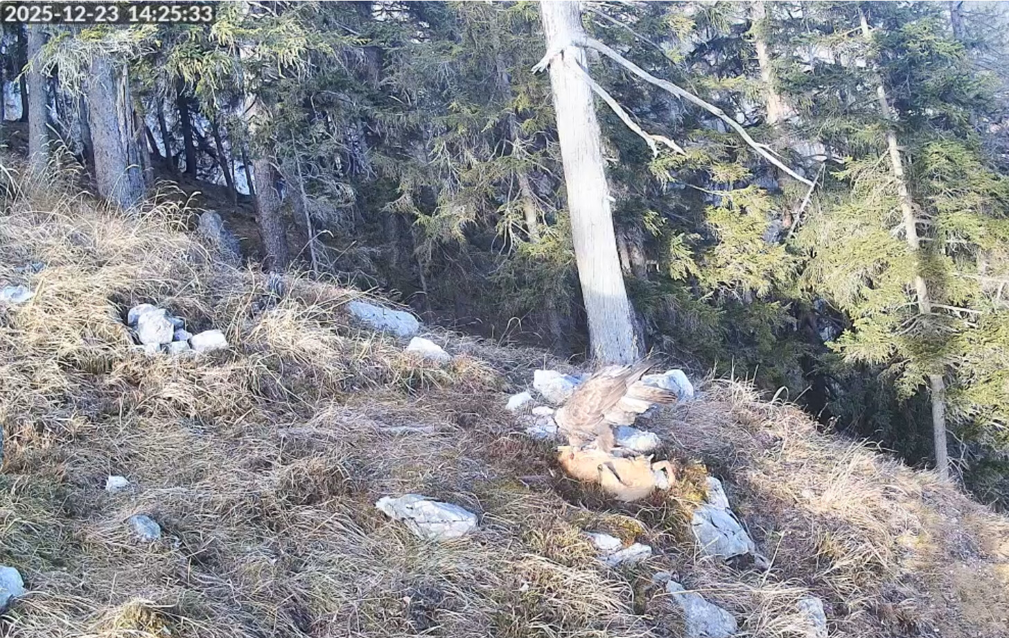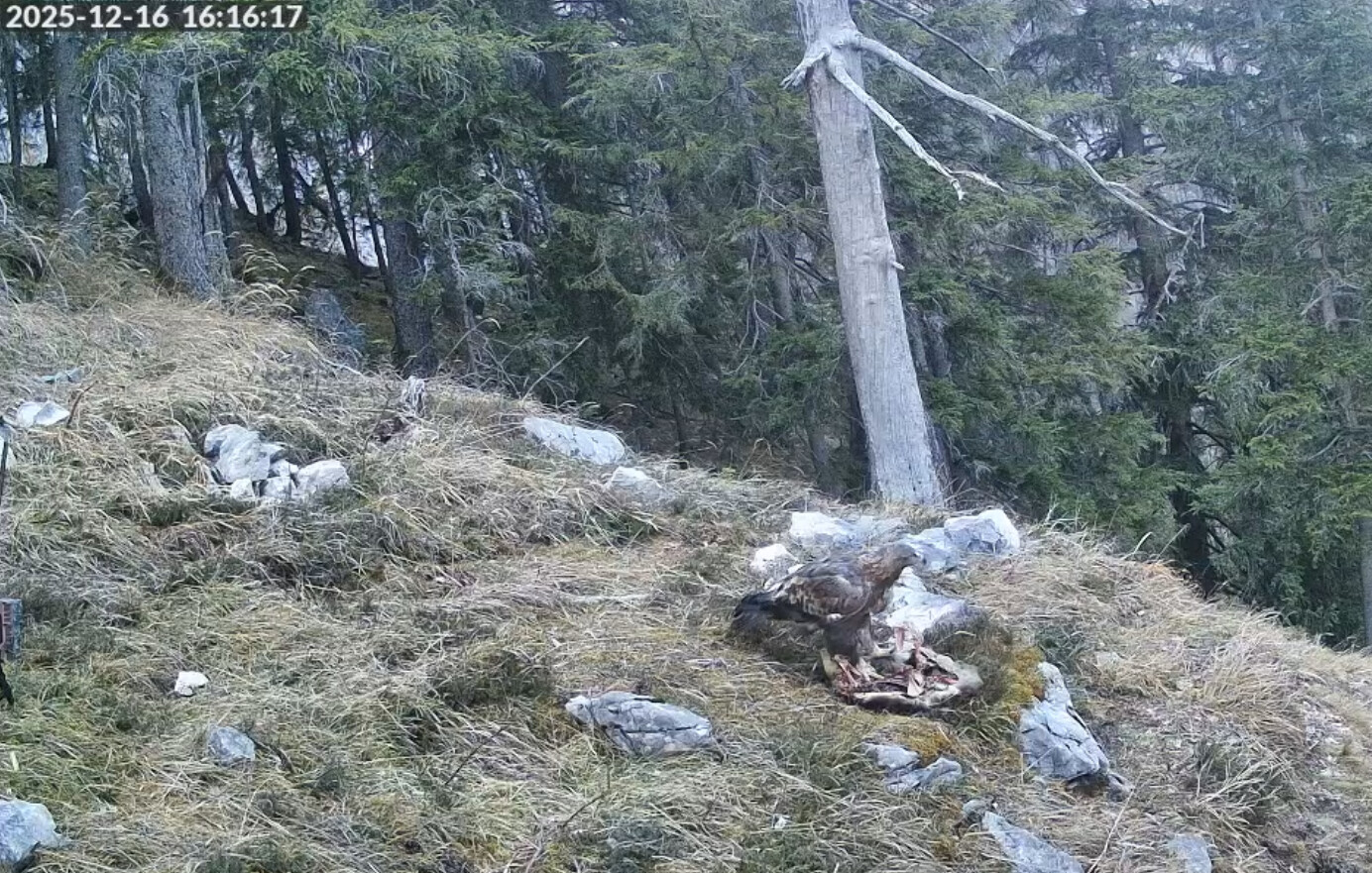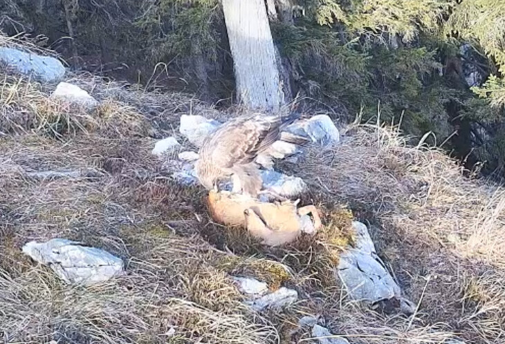 1 Steinadler ist wieder da. Es wurde schon viel gefressen.