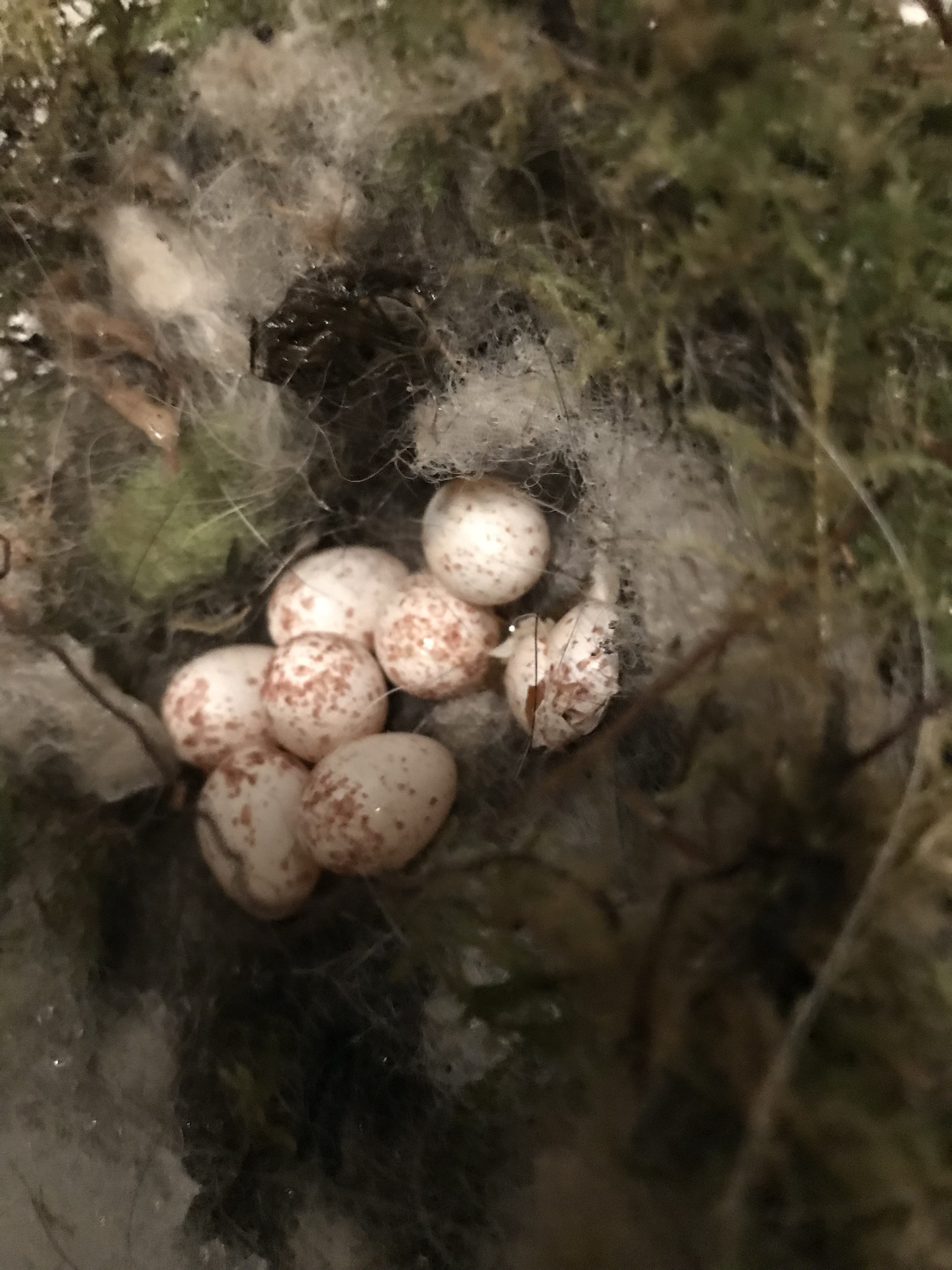 Wi haben heute unsere Nistkästen gesäubert und gereinigt. Was ich schon vermutete, es war ein Nest mit Eiern drin. Ein Gelege mit 8 Eiern, wer kann mir helfen, sie sind leicht rosa gesprenkelt