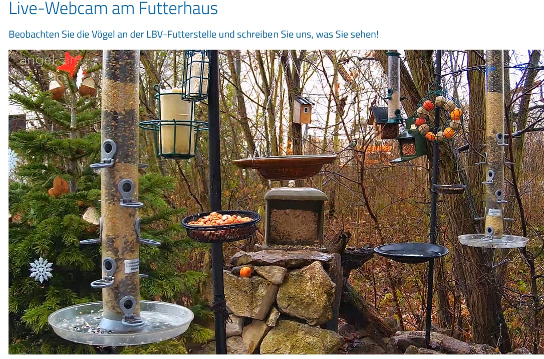 Liebe Futterhausgemeinschaft! Ihr seid die beste Zuschauerschaft, die wir uns nur vorstellen können. Danke für eure vielen, lieben und herzenswärmenden Nachrichten in diesem Jahr. Zum Fest findet ihr den LBV Weihnachtsbaum in diesem Jahr an unserer Futterstelle, bestückt mit Leckereien, einfach nur zum Anbeißen Danke an unseren LBV-Naturshop, für den essbaren Weihnachtsschmuck. Hoffentlich schmeckt er unseren gefiederten Gästen. Für heute und morgen ist im fränkischen Hilpoltstein noch Regen vorhergesagt, am Nachmittag des 24.12. wir es dann wieder trocken. Vielen Dank für eure große Unterstützung und euch allen, euren Lieben und der Familie ein frohes Fest. Euer LBV-Team