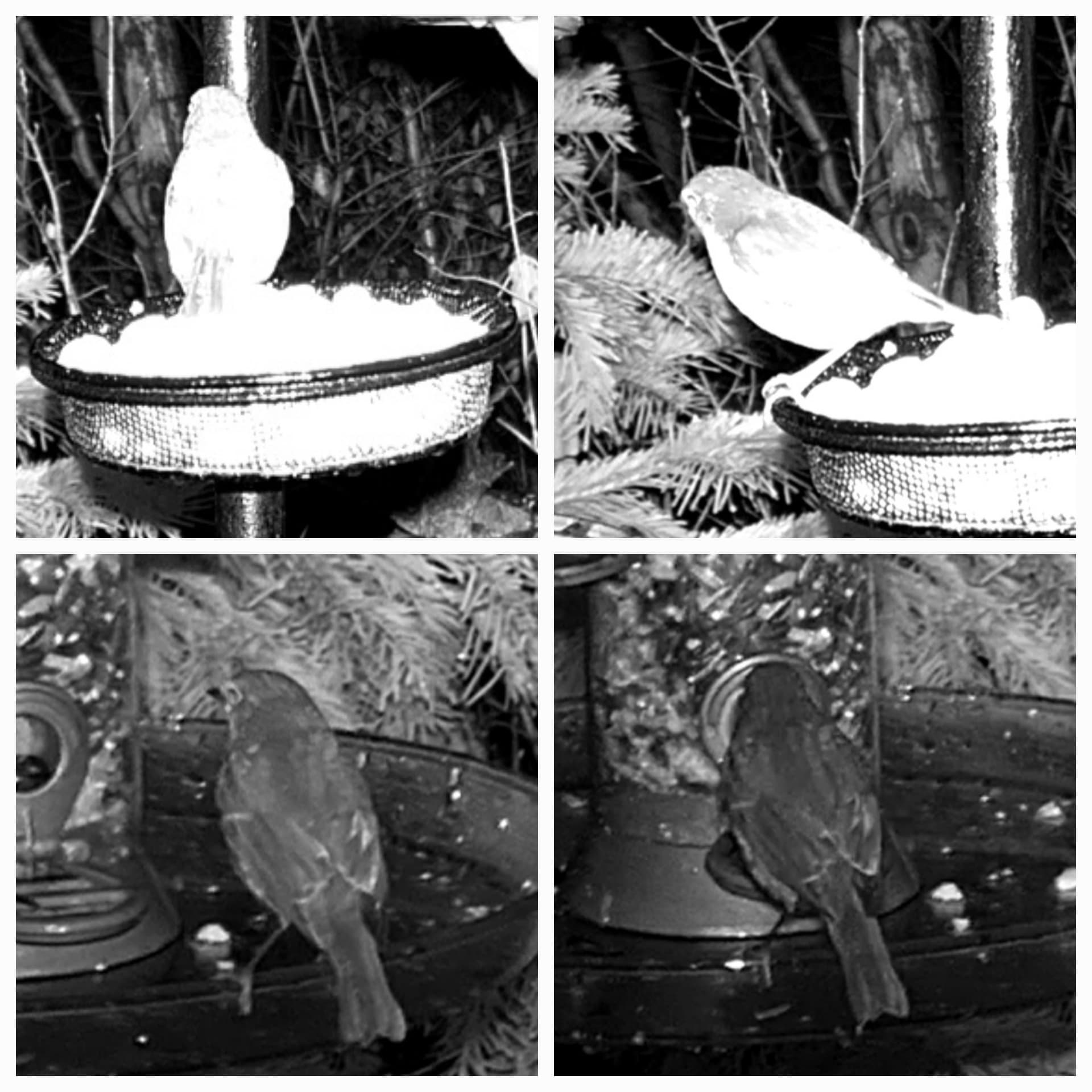 9.57 Also ganz fit erscheint mir die kleine Hauspätzin nicht, wirkt ein bissl unkoordiniert und aufgedunsen. Sie ist es wohl auch, die früh morgens noch im Dunklen da war…