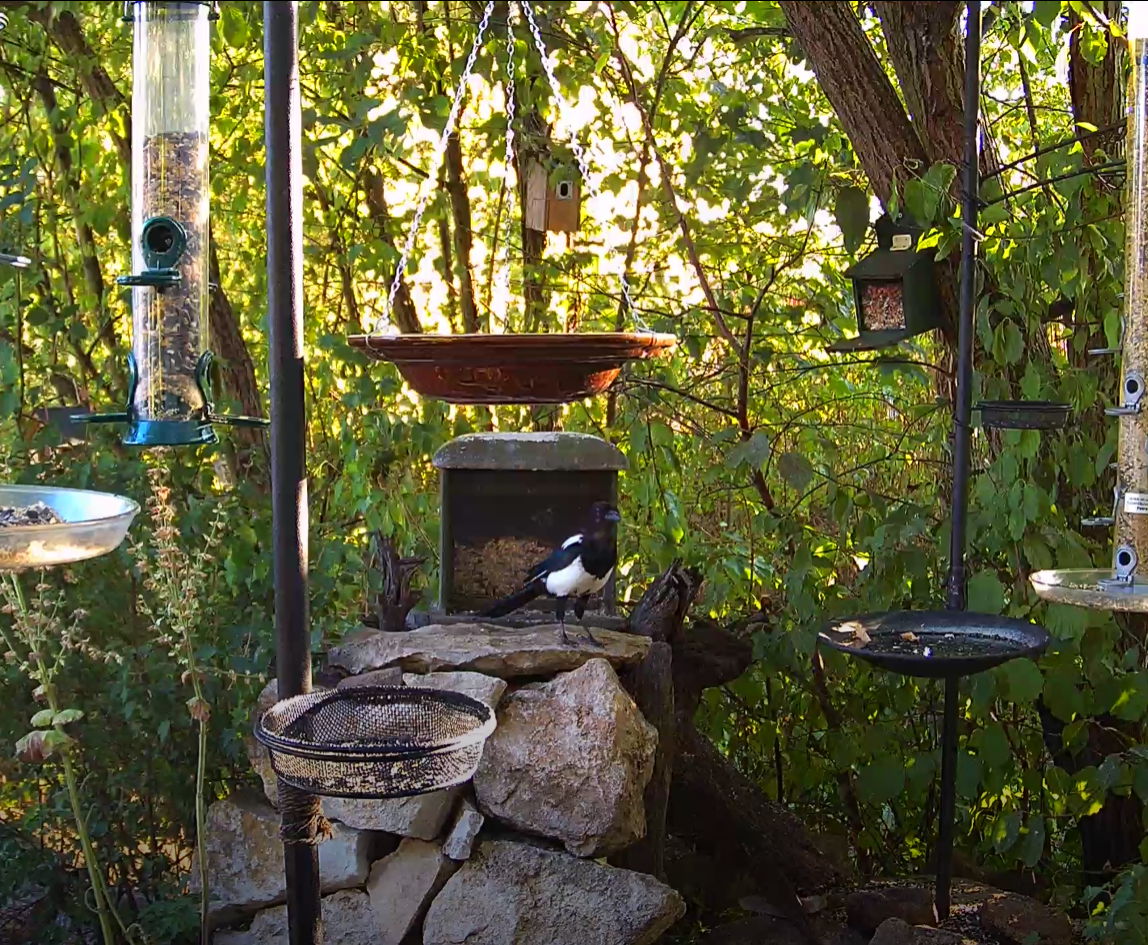19:04 - Elster vorm Silo - sie scheint in der Mauser zu sein, jedenfalls wirkte der Hinterkopf ein wenig „ausgedünnt“, als sie sich mal bewegte
