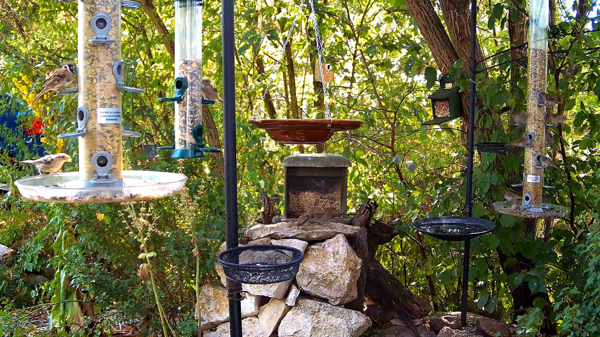 Ich habe gerade meine Nussstation aufgefüllt. Und Blaui wartet draussen auf dem Sitzring bis ich sie wieder bringe. Als wenn wir die nebeneinander aufhängen würden. ![]()