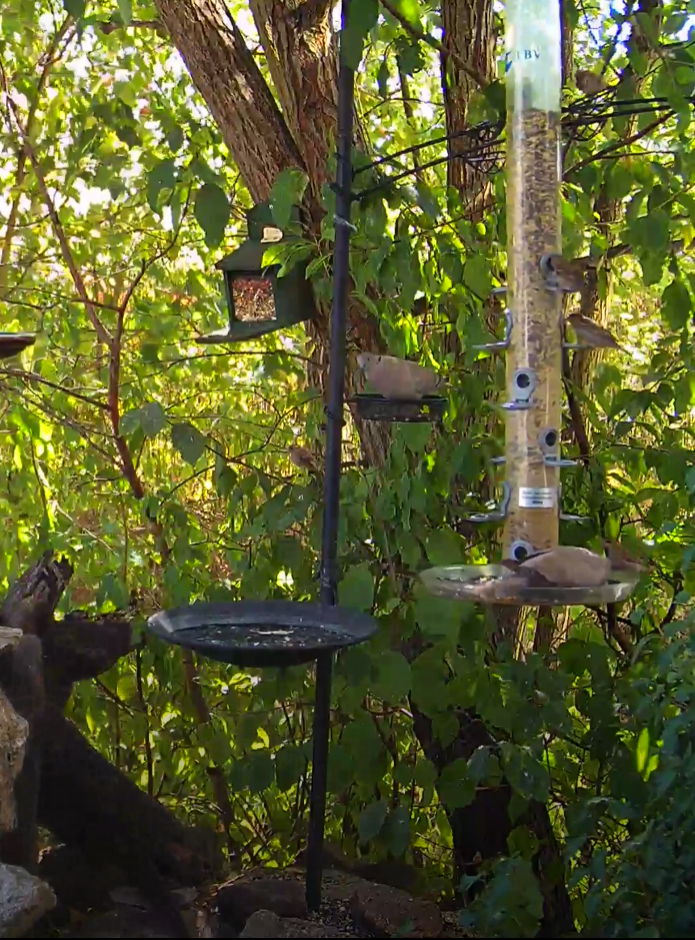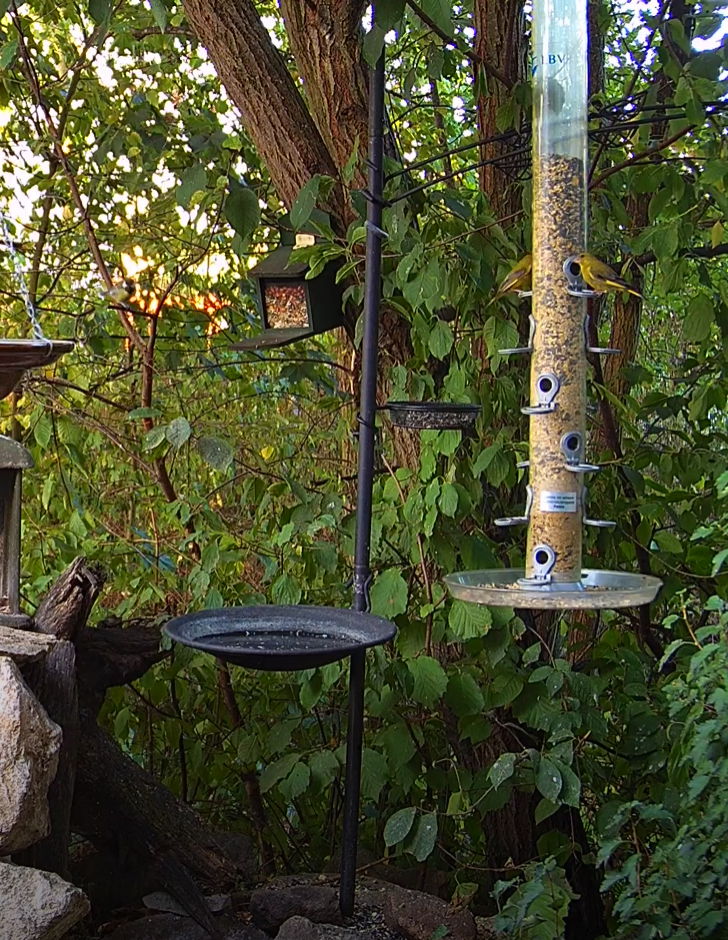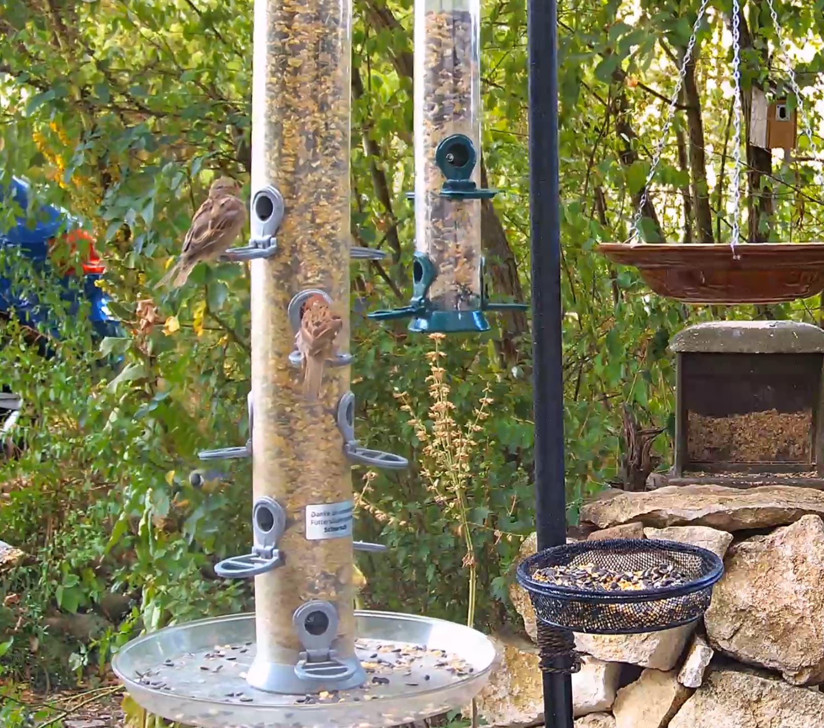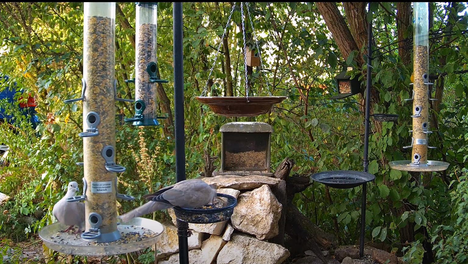 7:13 - Die 2 Grünis haben sich erst ein wenig gezofft, und dann lieber genau gegenüber ohne Blickkontakt ein paar Körnchen geschnappt