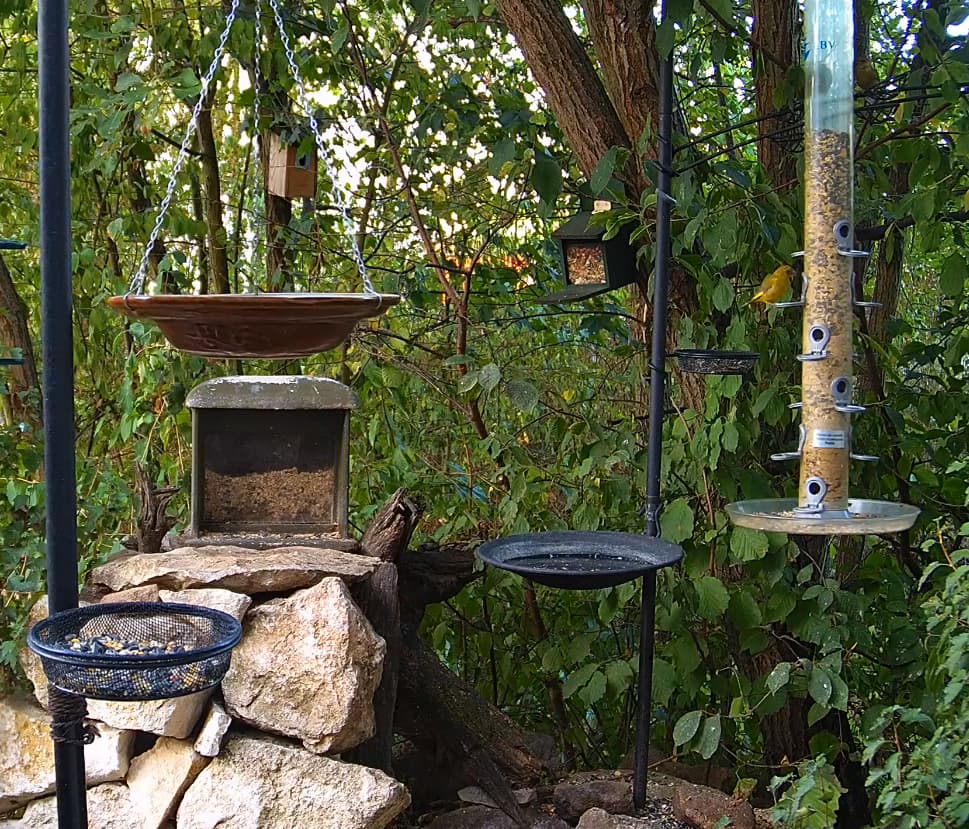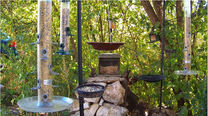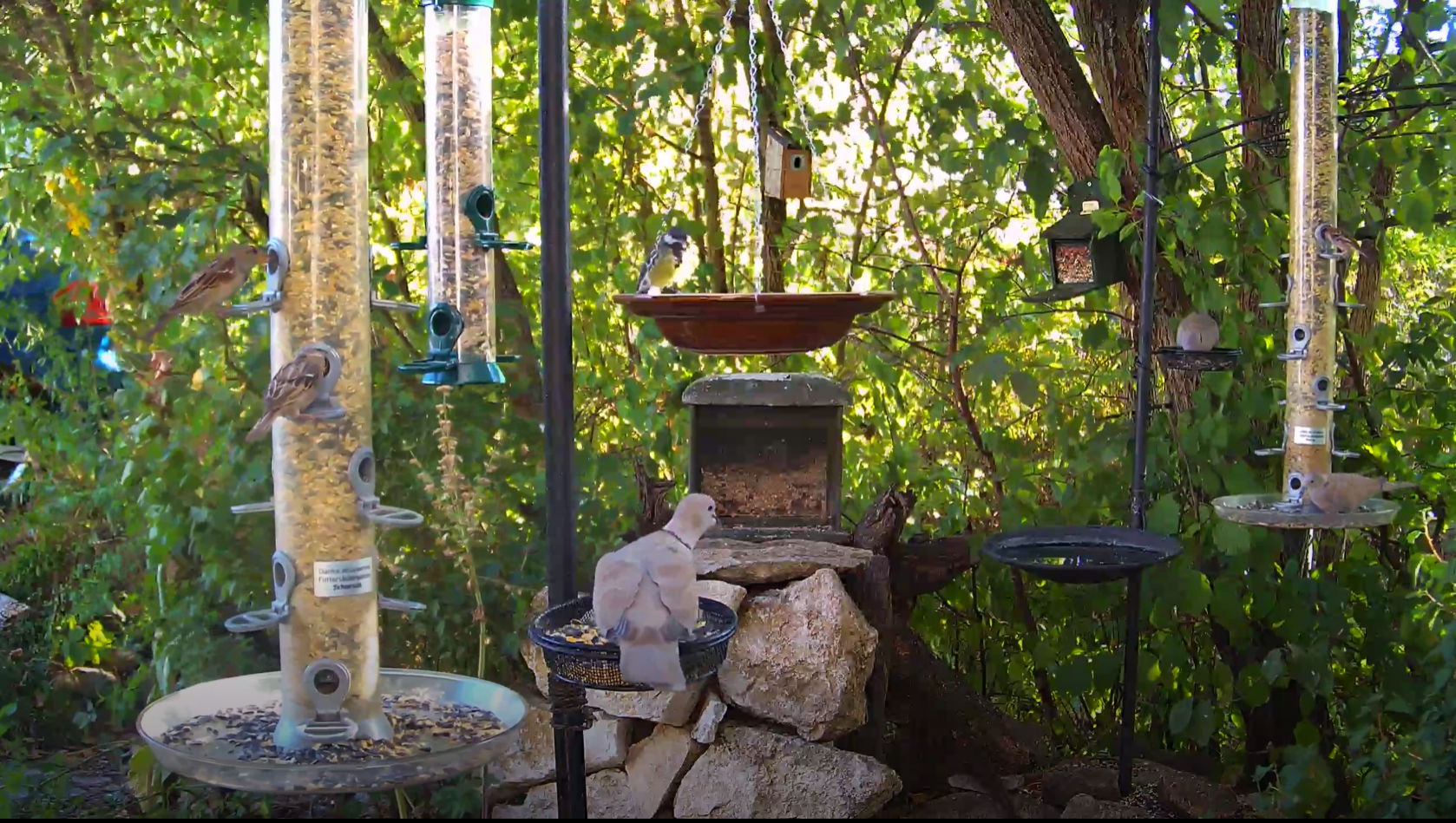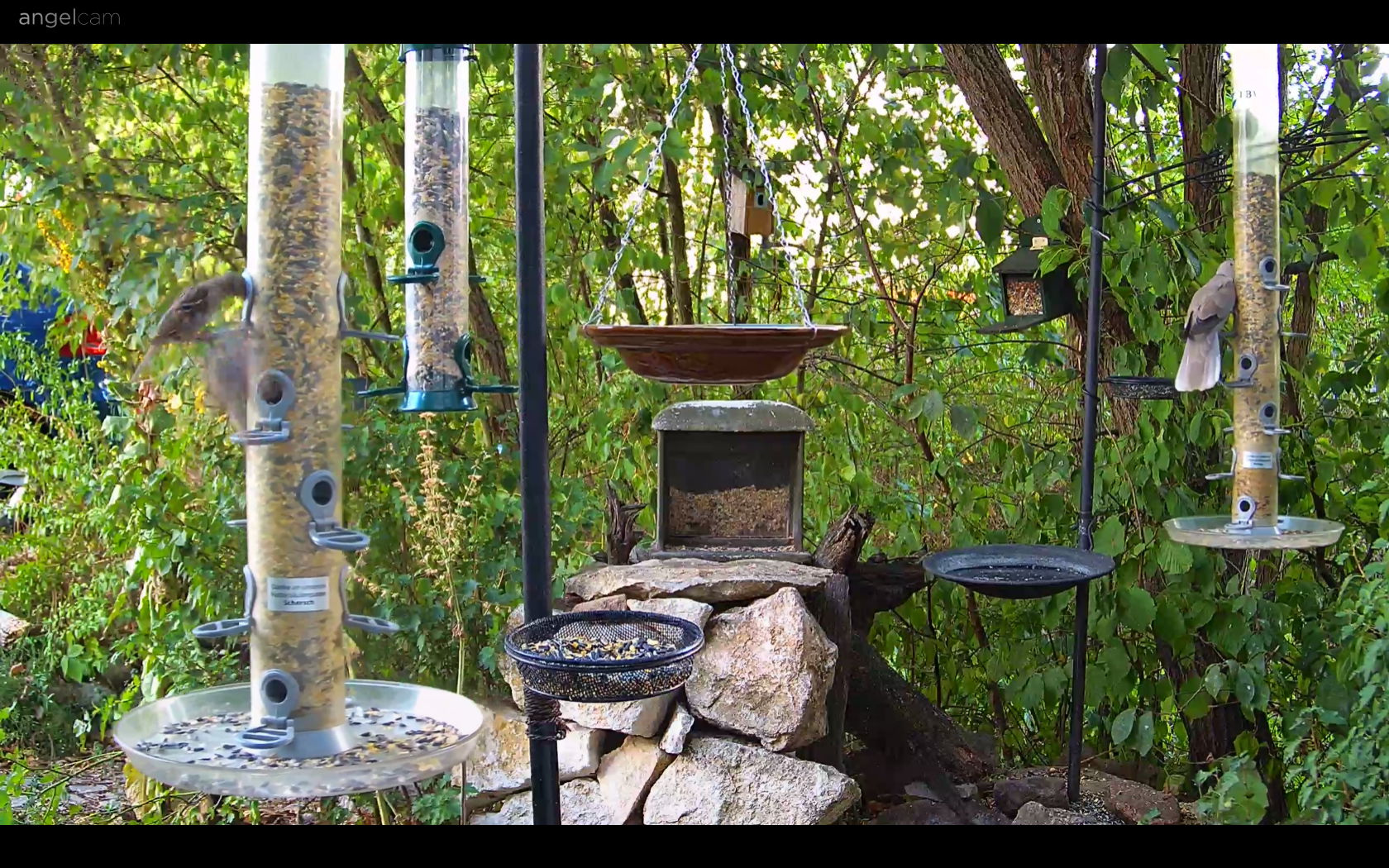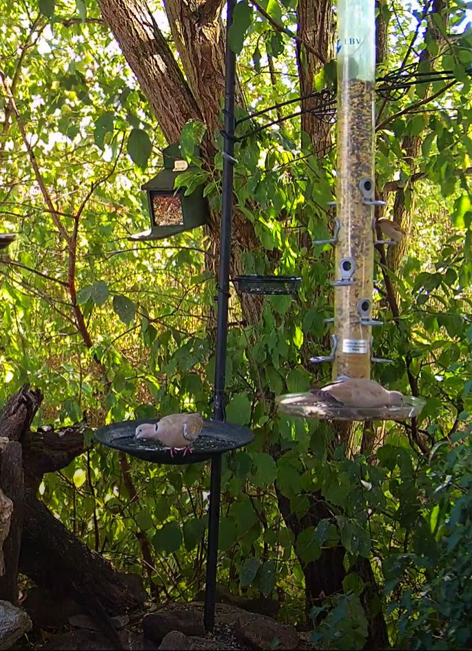 7:13 - Die 2 Grünis haben sich erst ein wenig gezofft, und dann lieber genau gegenüber ohne Blickkontakt ein paar Körnchen geschnappt