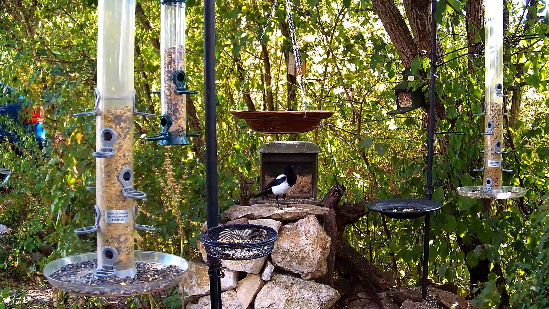 Elster am futtern und TüTa hält Siesta.