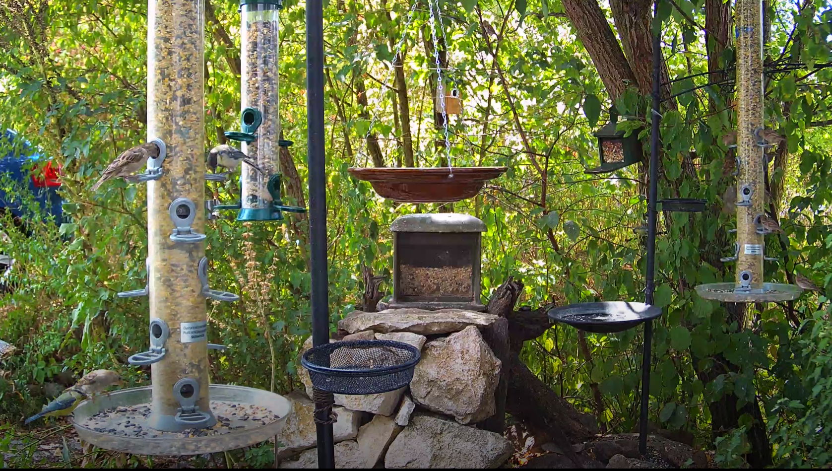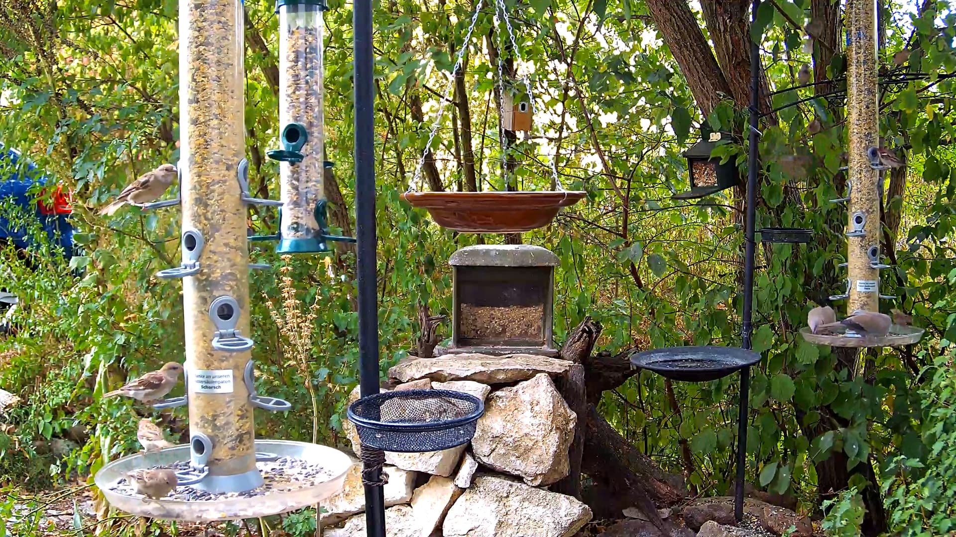 Spatzen und Meiserl beim gemeinsamen Futtern - recht schiedlich-friedlich ![]()