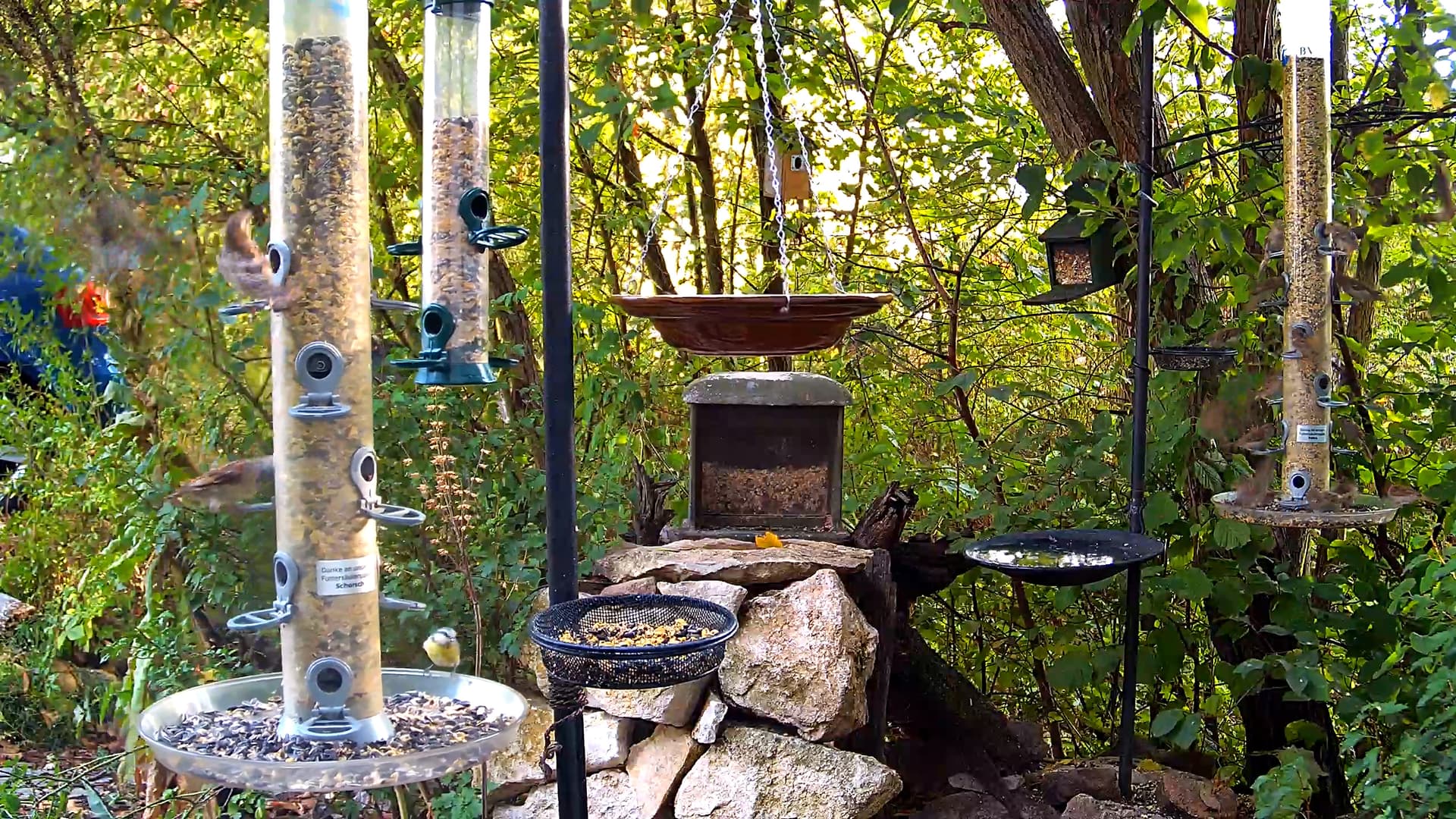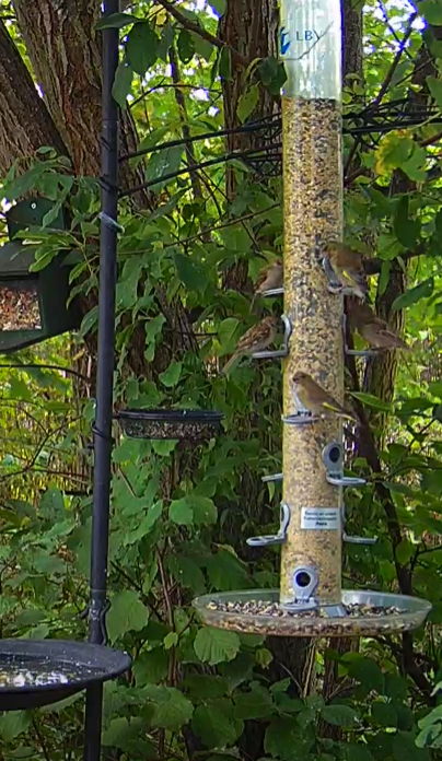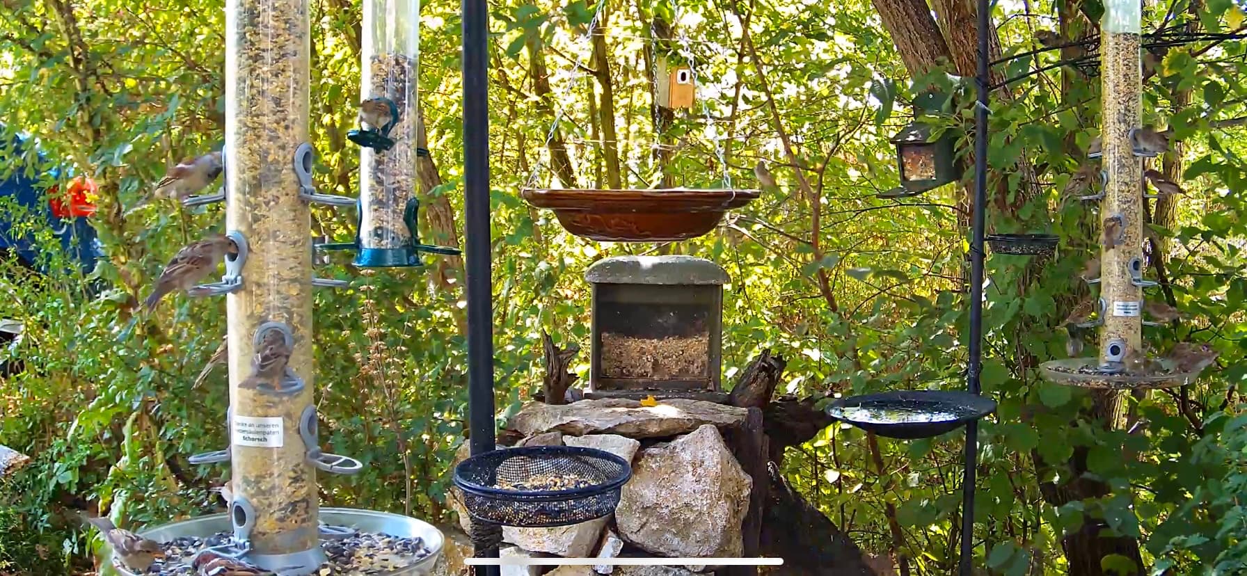 6.30 Guten Morgen alle zusammen! Ein Grünfink sitzt links an „meiner“ Säule, das Mäuslein vor dem Bodensilo und der „Häusl-Vogel“