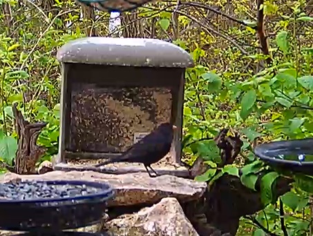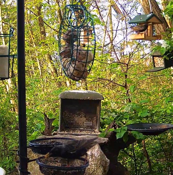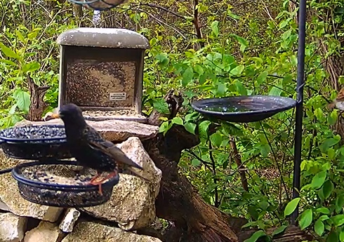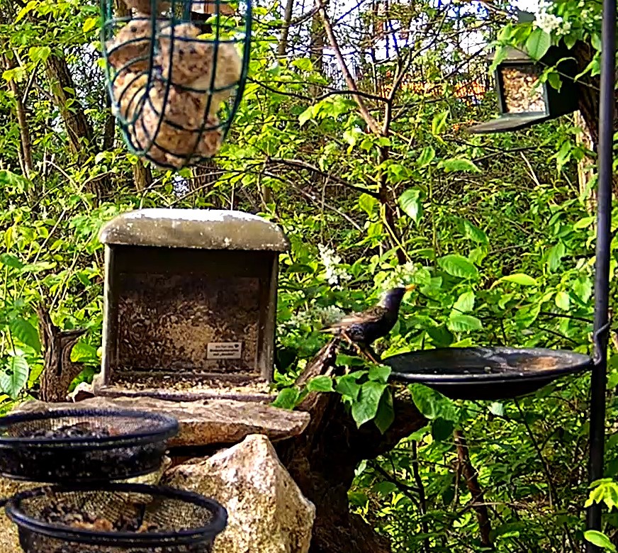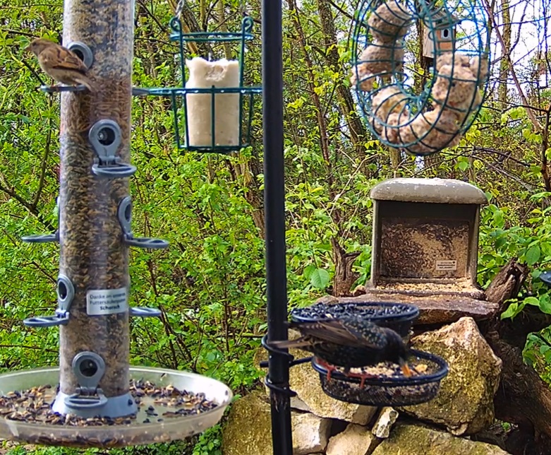 Heute morgen ist mir der Star „entwischt“, obwohl er mehrmals da war. Dafür bereitet der Kernbeißer großes Interesse, auch ohne Partner. Die Blaue versteckt sich hinter dem Liter und der Amselmann kommt auch als Single.