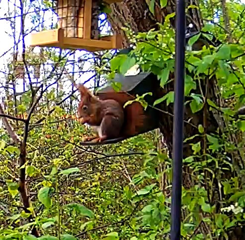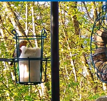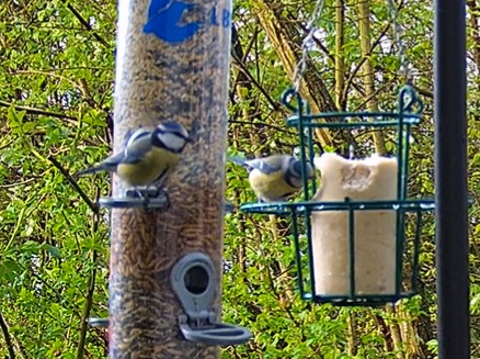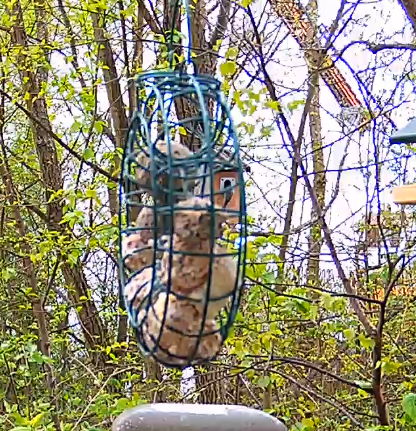 13:27 - Eine Blaumeise hat sich vorhin für längere Zeit am Einflugloch des Nistkastens und rundherum aufgehalten und beschäftigt.