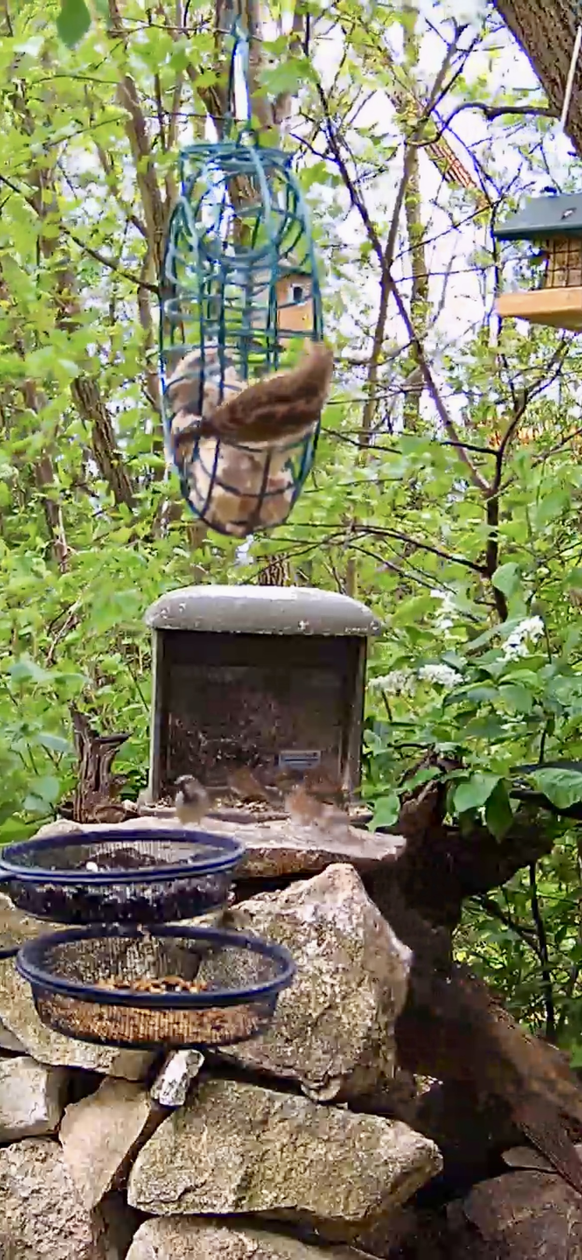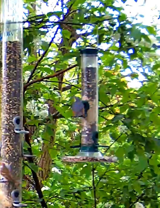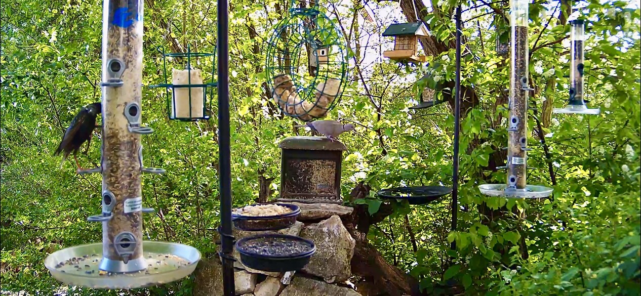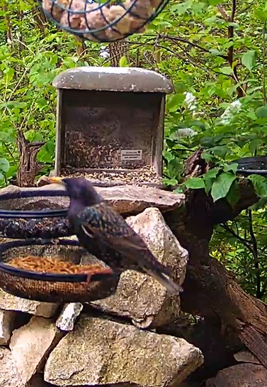 Der Star muss doch alle Futteroptionen ausprobieren. Robin war weit entfernt im Gebüsch zu entdecken und der Amselmann war auch mal zu Besuch.