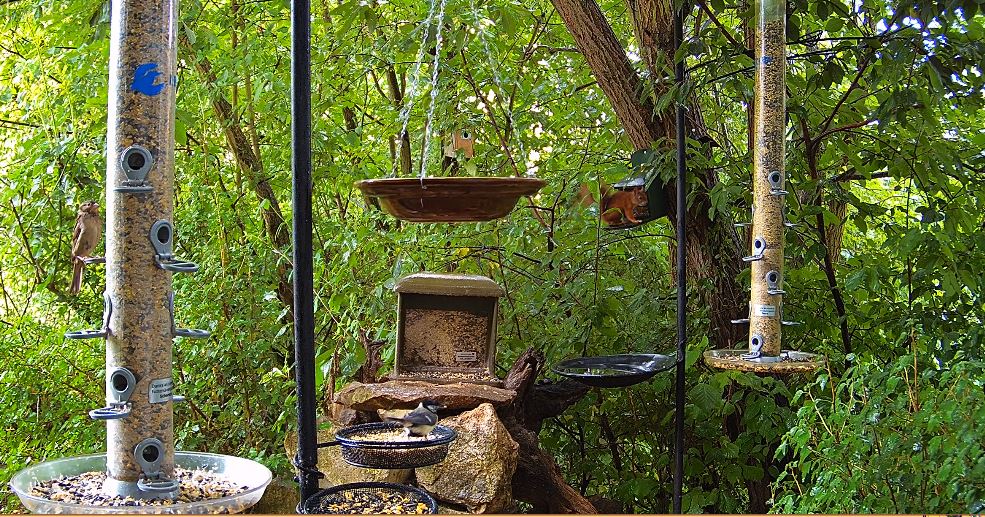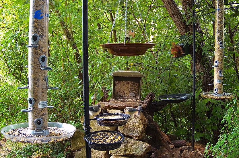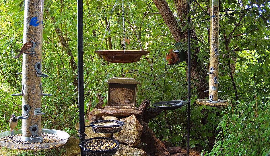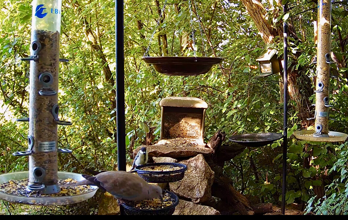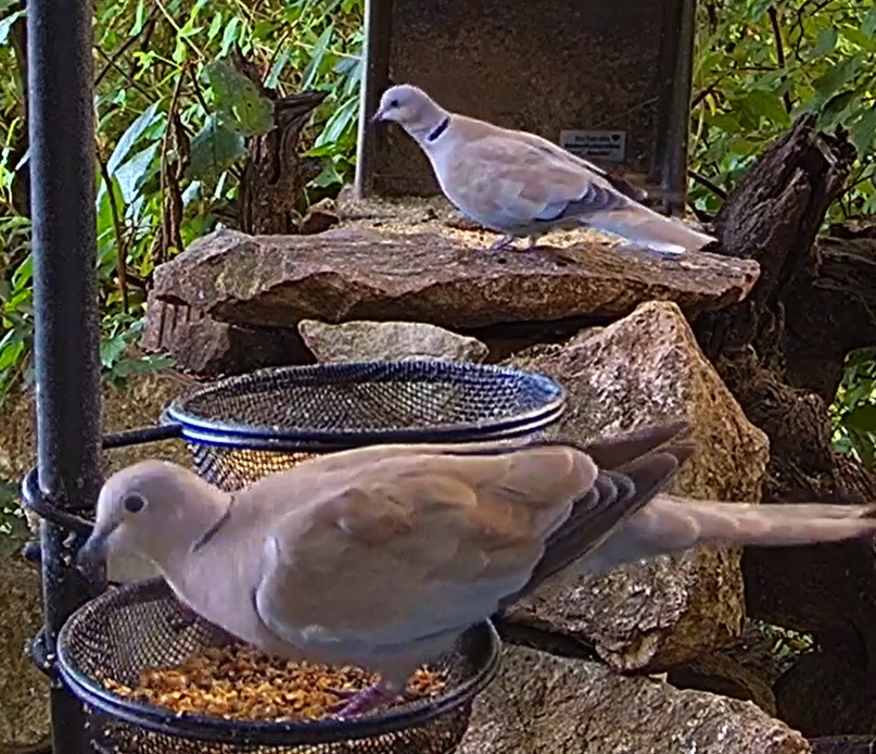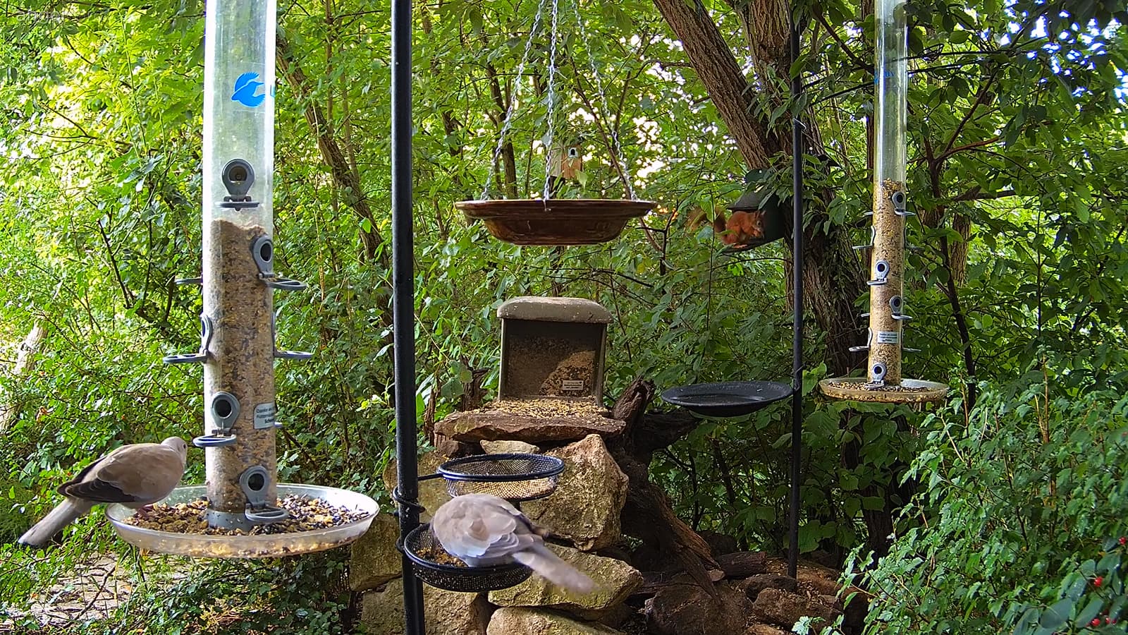 Türkentauben und Eichhörnchen