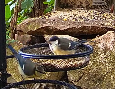 Heute morgen schon recht turbulent mit Blauen und schwarzen Meisen, aber sie vertragen sich recht gut. Wie immer zu Besuch, die einsame Tüta.